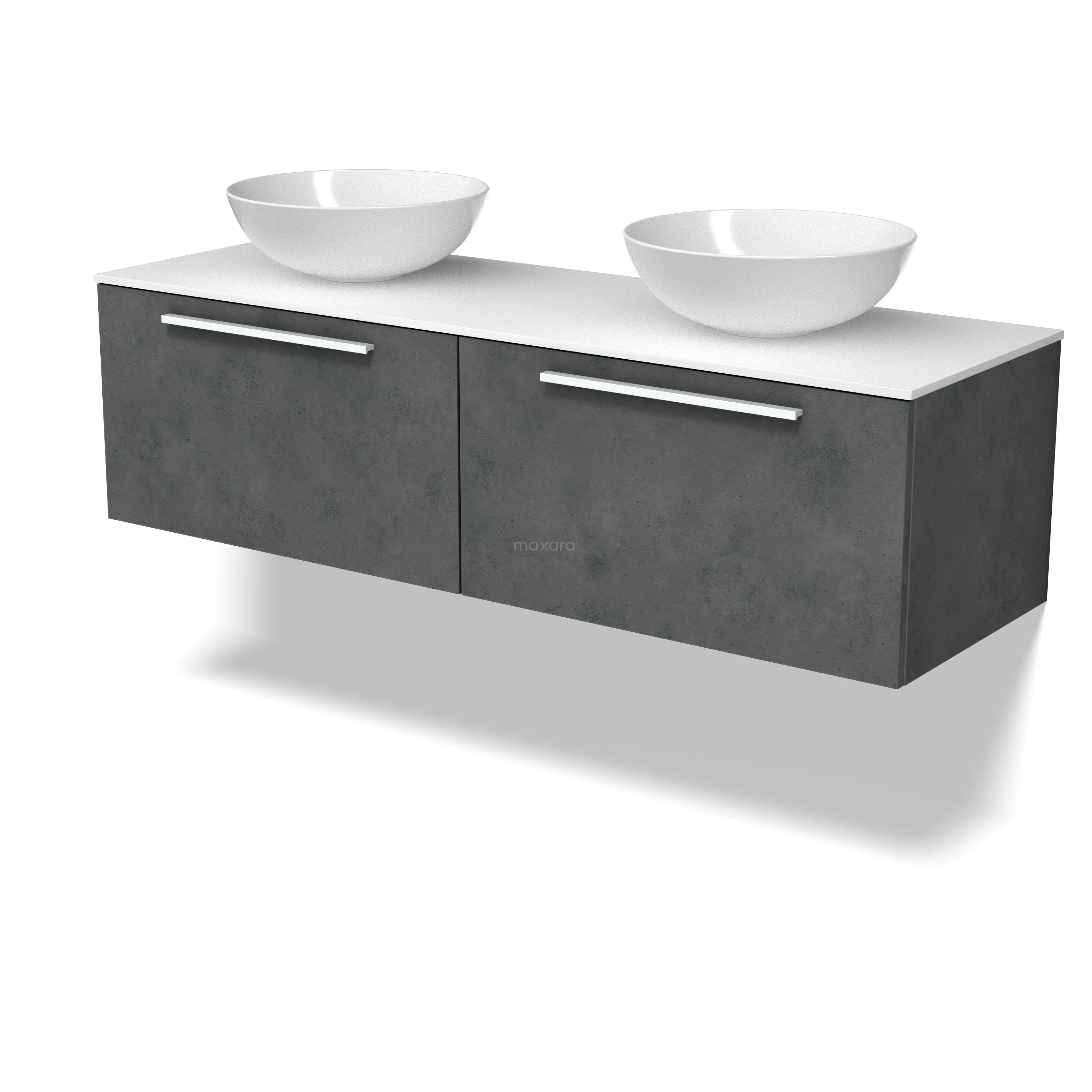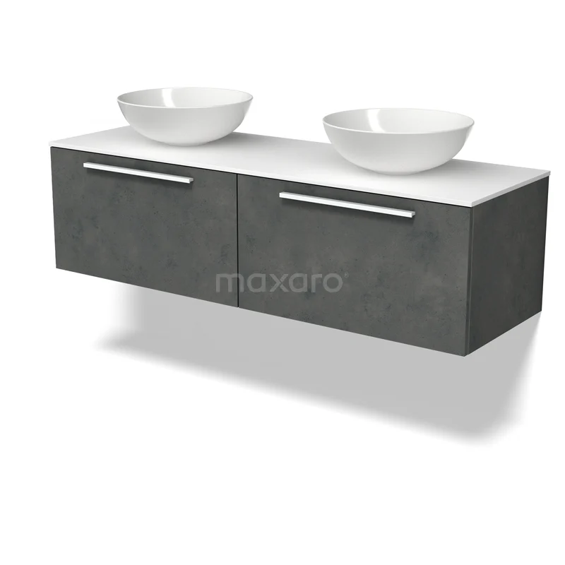 Modulo Plato Badmöbel mit Aufsatzwaschbecken | 140 cm Dunkelgrauer Beton Flach front Solid Surface blatt 2 nebeneinanderliegende Schubladen