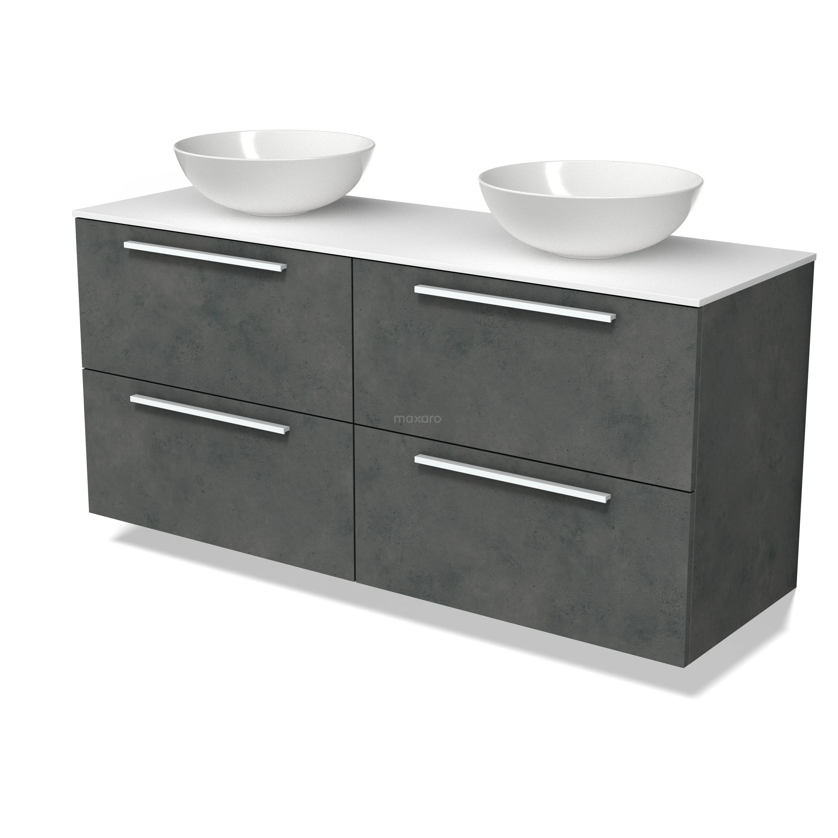 Modulo Plato Badmöbel mit Aufsatzwaschbecken | 140 cm Dunkelgrauer Beton Flach front Solid Surface blatt 4 Schubladen