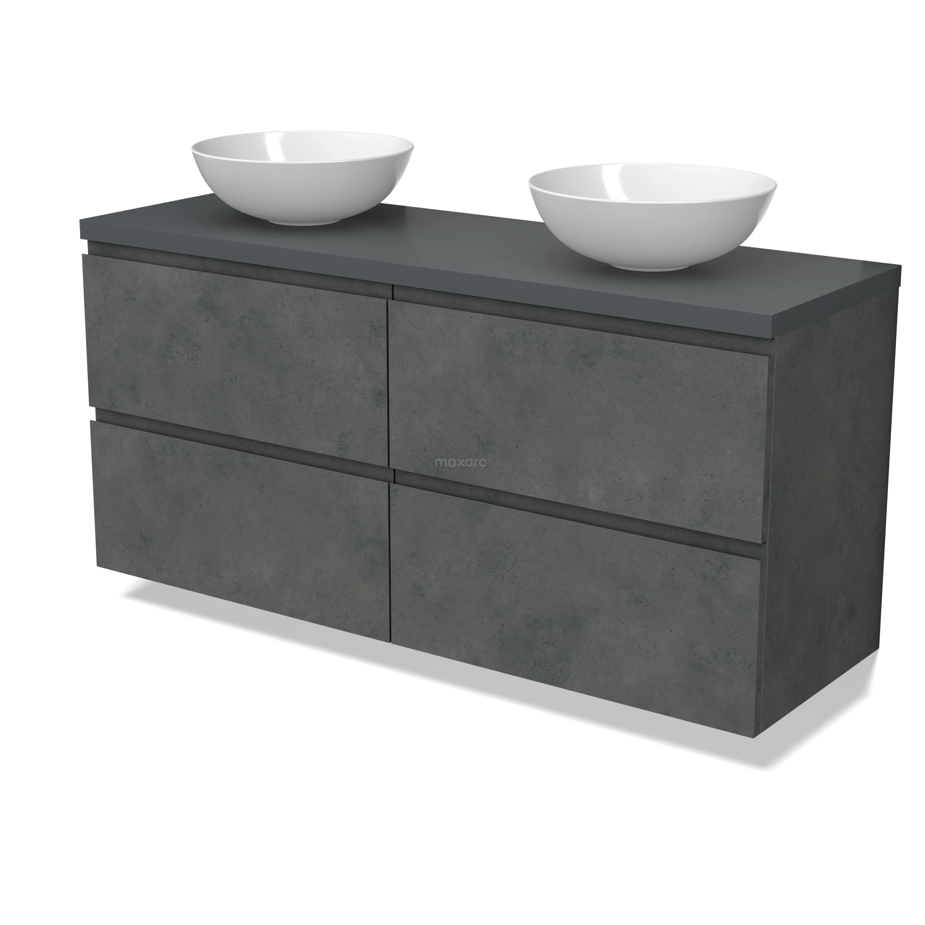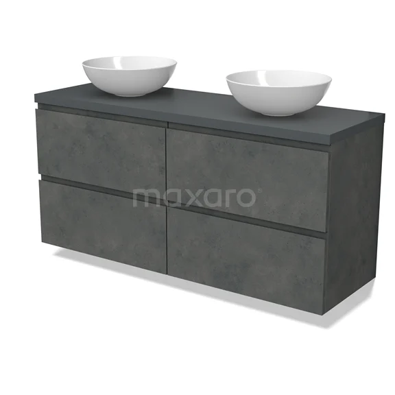 Modulo Plato Badmöbel mit Aufsatzwaschbecken | 140 cm Dunkelgrauer Beton Grifflos front Dunkelgrau blatt 4 Schubladen