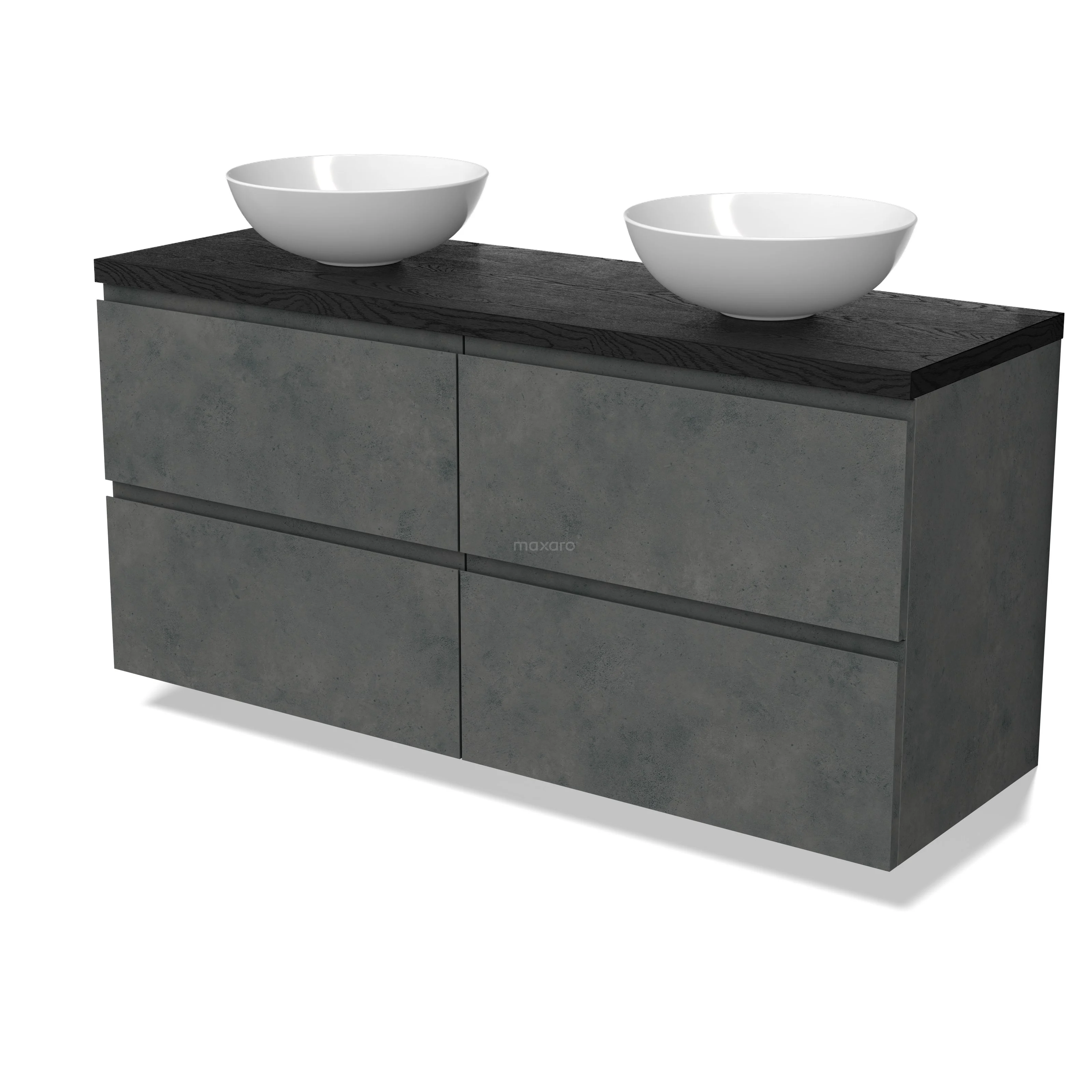 Modulo Plato Badmöbel mit Aufsatzwaschbecken | 140 cm Dunkelgrauer Beton Grifflos front Schwarze Eiche blatt 4 Schubladen