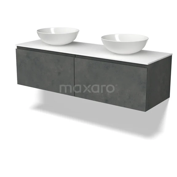 Modulo Plato Badmöbel mit Aufsatzwaschbecken | 140 cm Dunkelgrauer Beton Grifflos front Solid Surface blatt 2 nebeneinanderliegende Schubladen