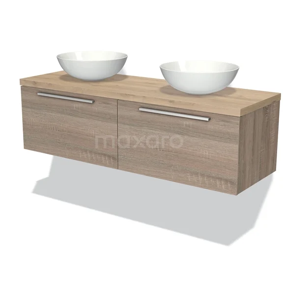 Modulo Plato Badmöbel mit Aufsatzwaschbecken | 140 cm Eiche Flach front Hellbraune Eiche blatt 2 nebeneinanderliegende Schubladen