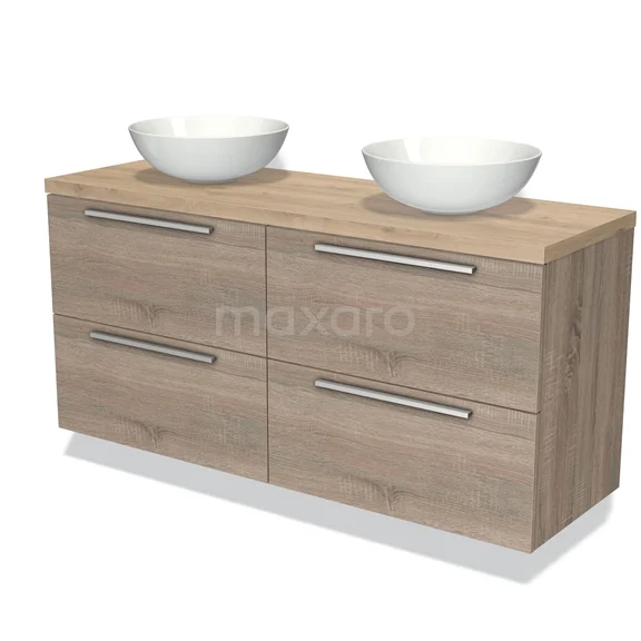 Modulo Plato Badmöbel mit Aufsatzwaschbecken | 140 cm Eiche Flach front Hellbraune Eiche blatt 4 Schubladen