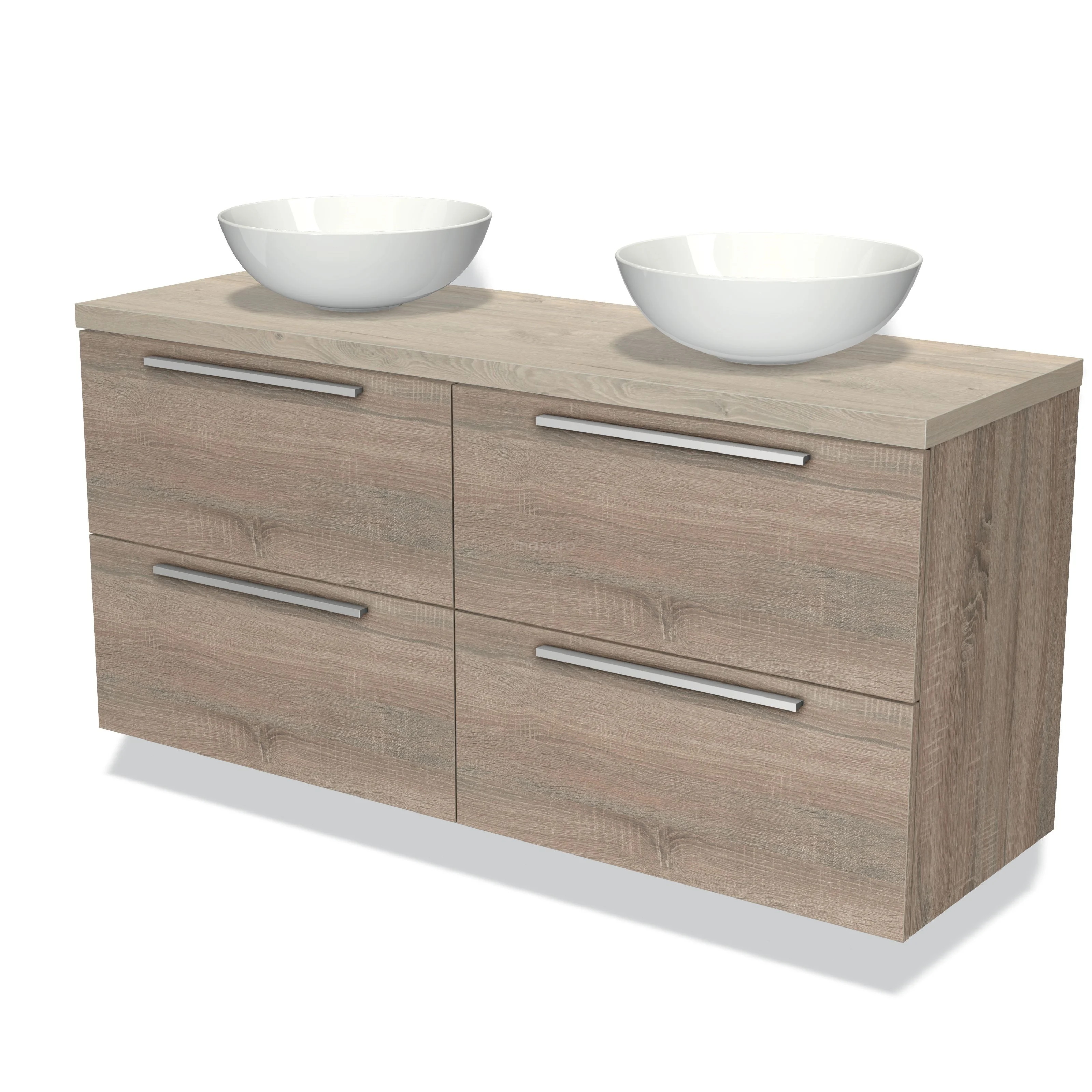Modulo Plato Badmöbel mit Aufsatzwaschbecken | 140 cm Eiche Flach front Hellgraue Eiche blatt 4 Schubladen