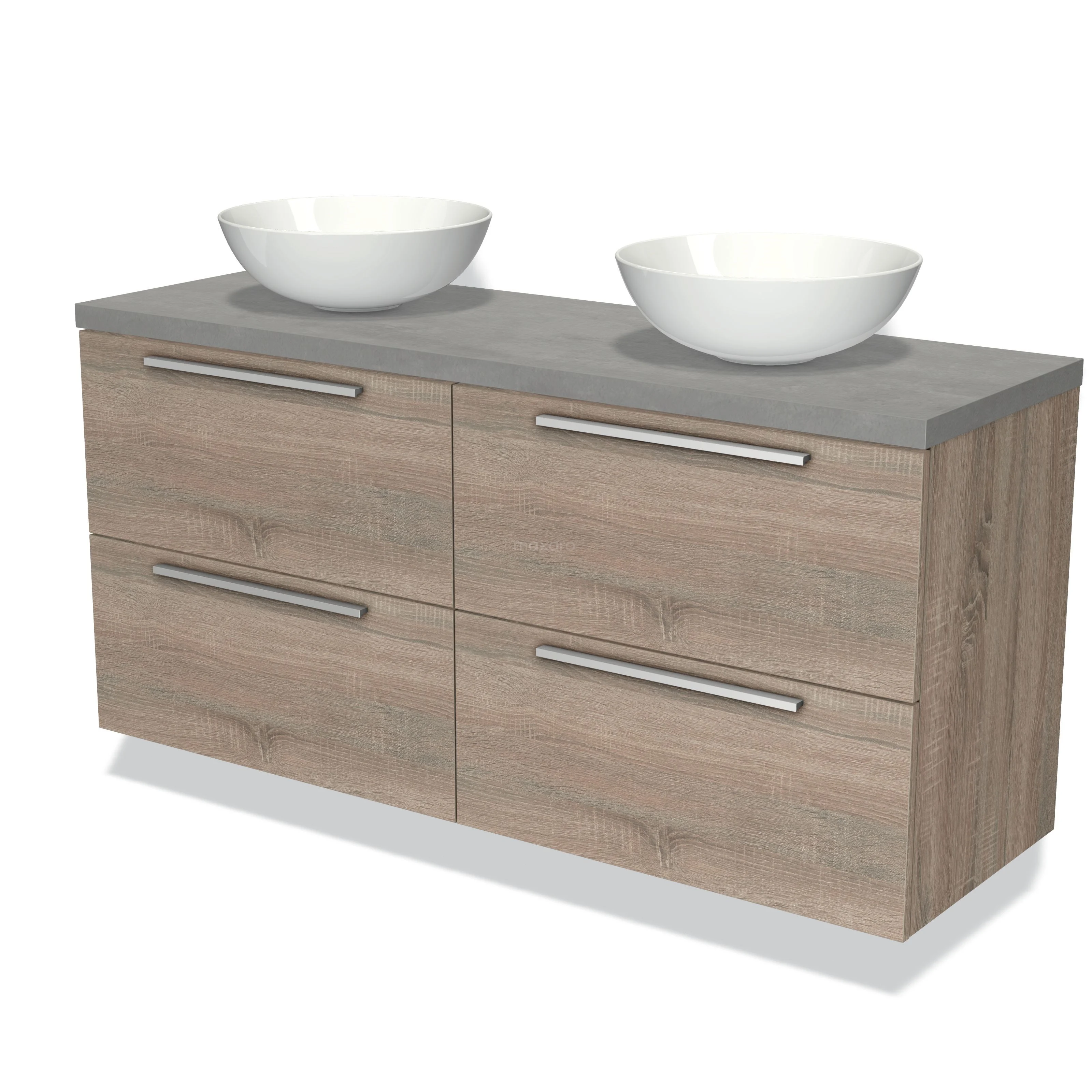 Modulo Plato Badmöbel mit Aufsatzwaschbecken | 140 cm Eiche Flach front Hellgrauer Beton blatt 4 Schubladen