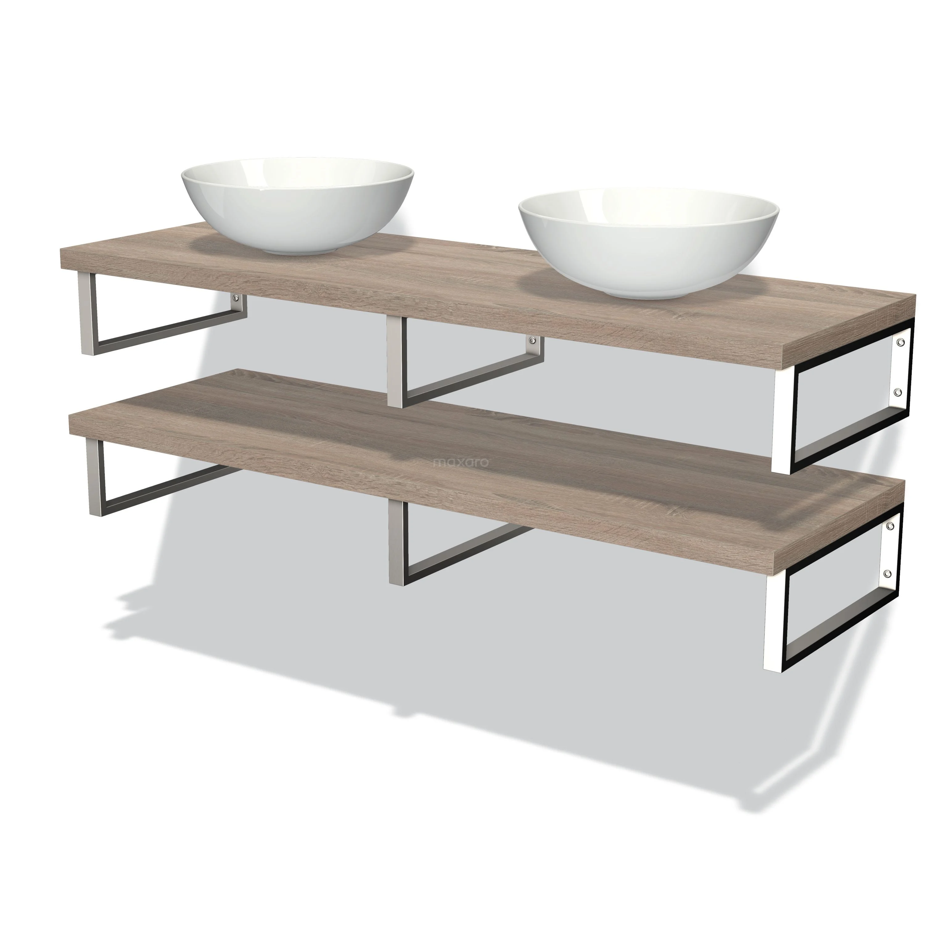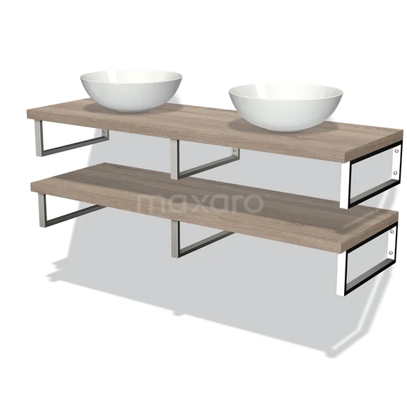Modulo Plato Badmöbel mit Aufsatzwaschbecken | 140 cm Eiche front Eiche blatt 2 Waschtischplatten