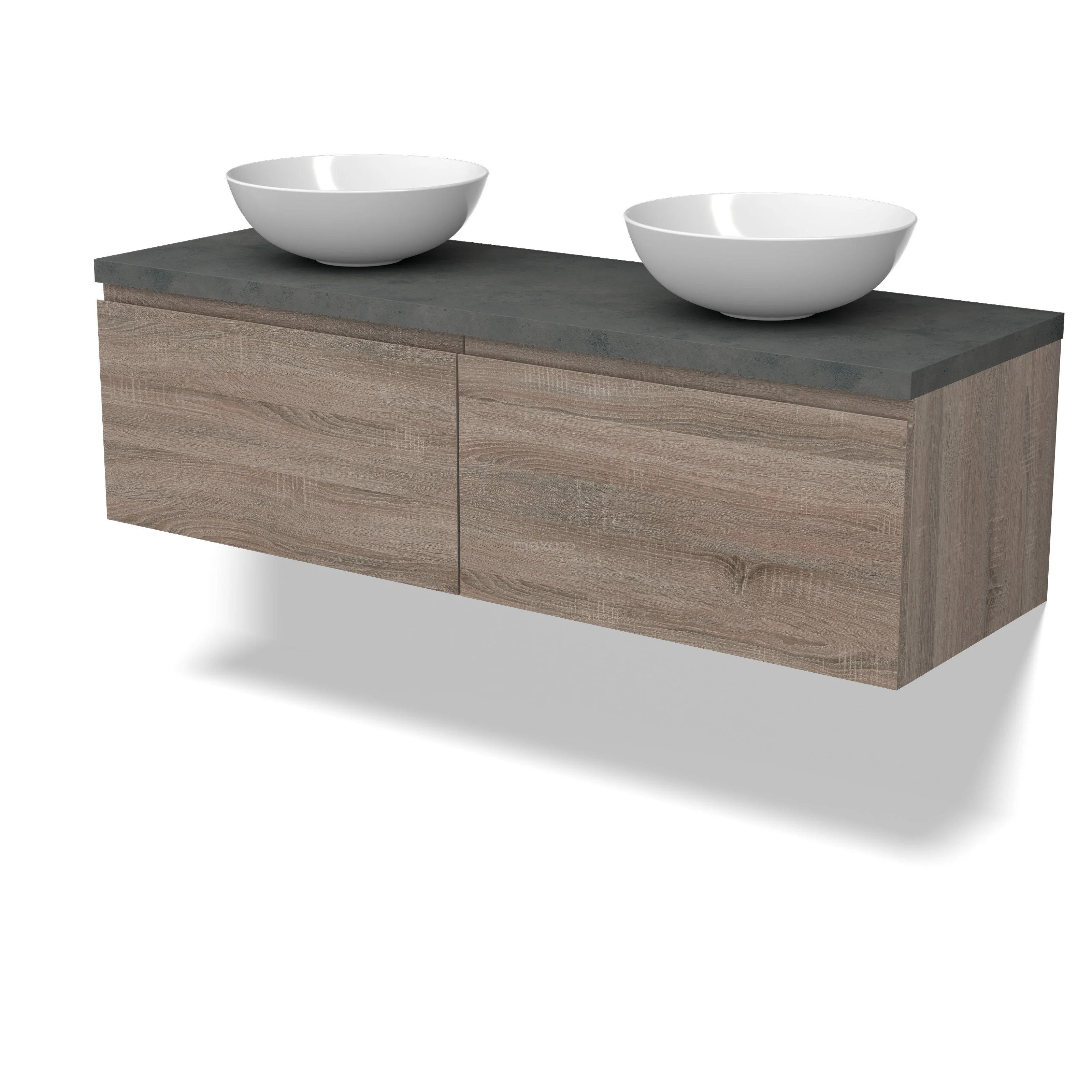 Modulo Plato Badmöbel mit Aufsatzwaschbecken | 140 cm Eiche Grifflos front Dunkelgrauer Beton blatt 2 nebeneinanderliegende Schubladen