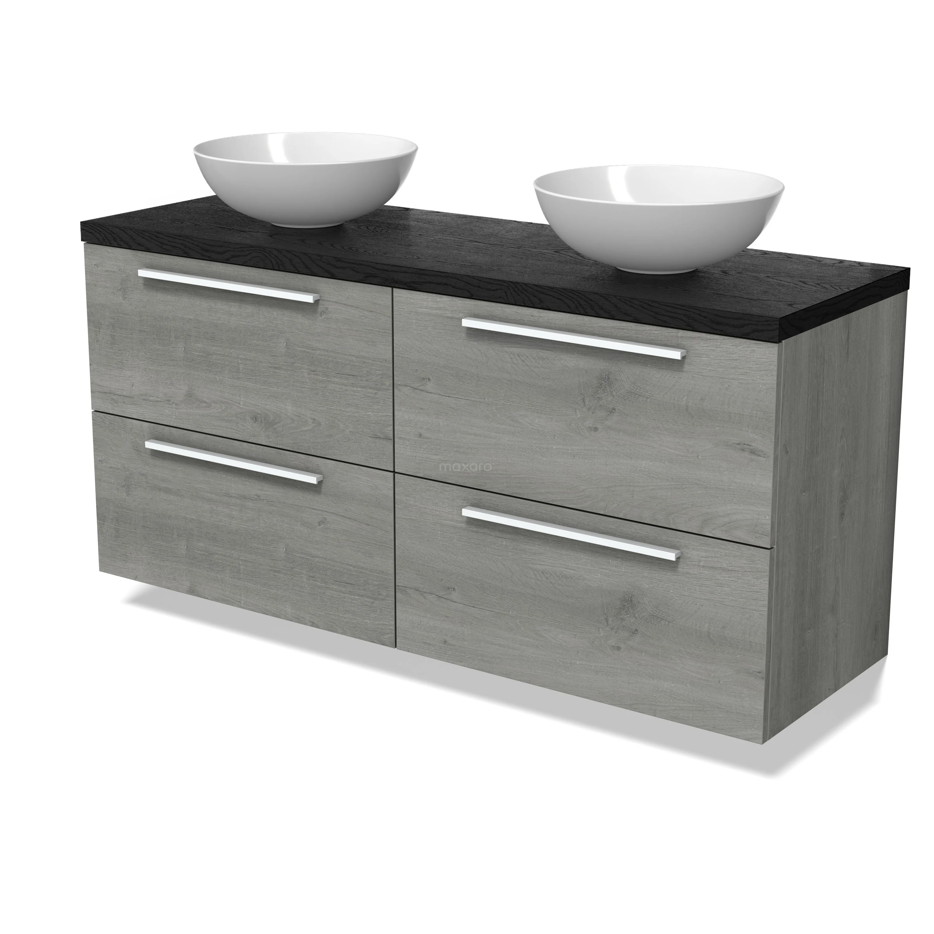 Modulo Plato Badmöbel mit Aufsatzwaschbecken | 140 cm Graue Eiche Flach front Schwarze Eiche blatt 4 Schubladen