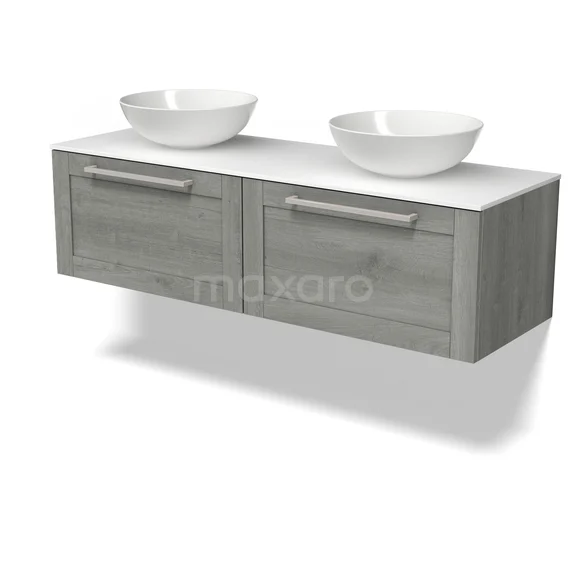 Modulo Plato Badmöbel mit Aufsatzwaschbecken | 140 cm Graue Eiche Rahmen front Solid Surface blatt 2 nebeneinanderliegende Schubladen