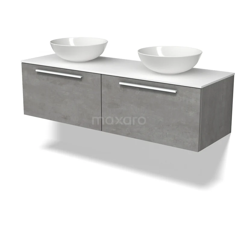 Modulo Plato Badmöbel mit Aufsatzwaschbecken | 140 cm Hellgrauer Beton Flach front Solid Surface blatt 2 nebeneinanderliegende Schubladen