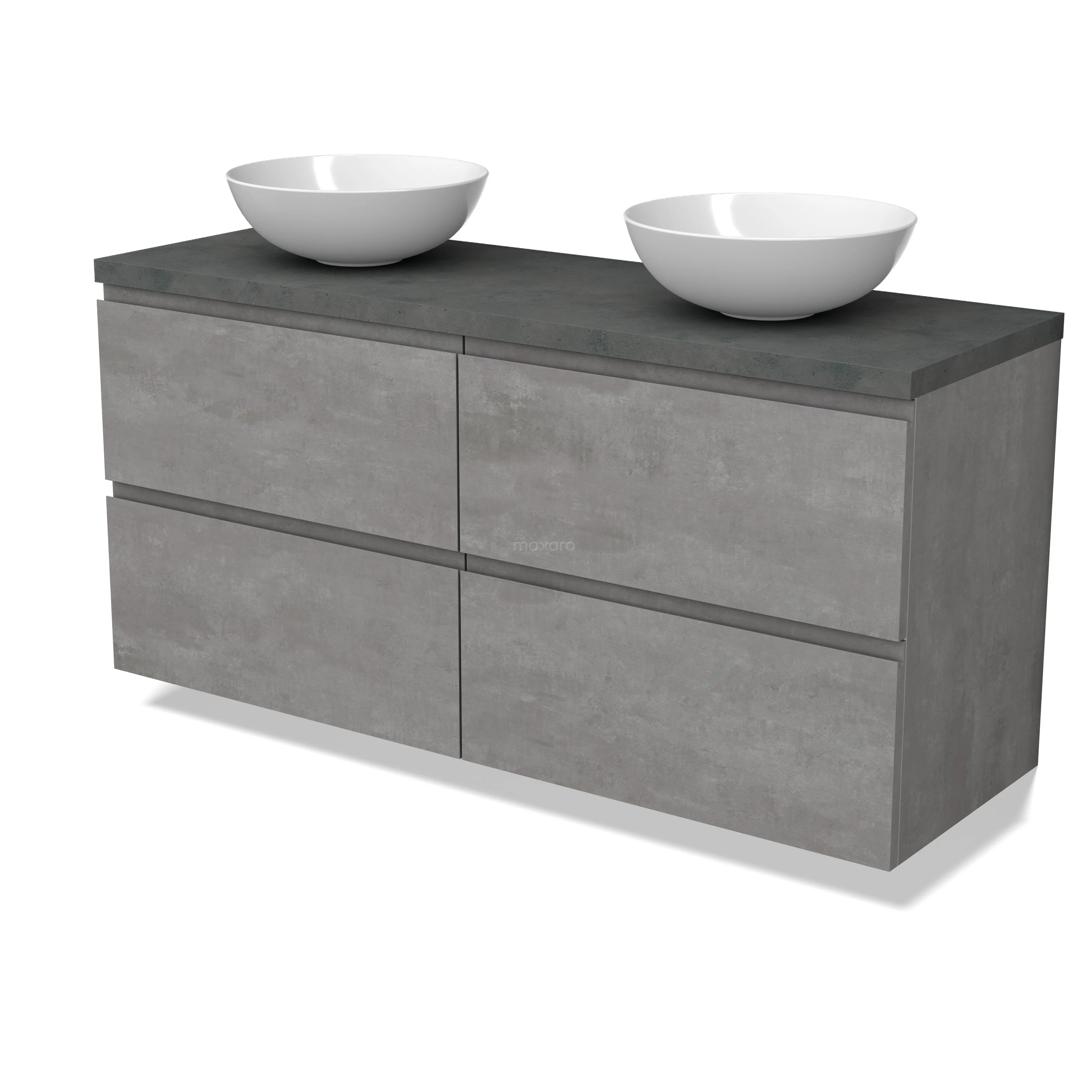 Modulo Plato Badmöbel mit Aufsatzwaschbecken | 140 cm Hellgrauer Beton Grifflos front Dunkelgrauer Beton blatt 4 Schubladen