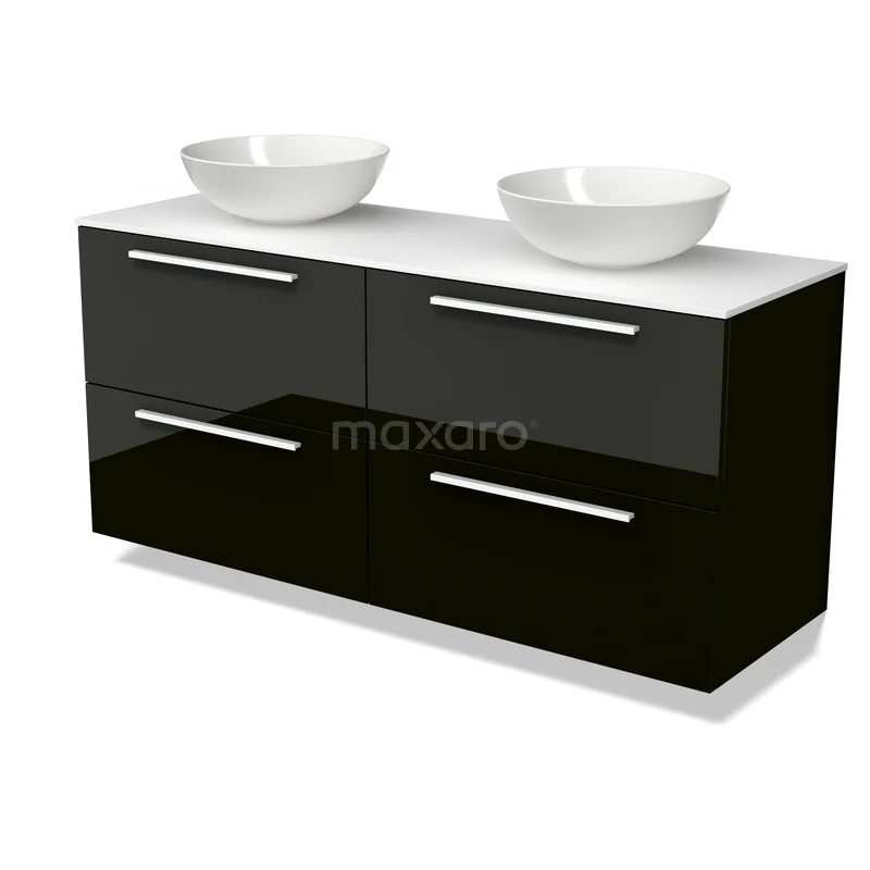 Modulo Plato Badmöbel mit Aufsatzwaschbecken | 140 cm Hochglanz Schwarz Flach front Solid Surface blatt 4 Schubladen