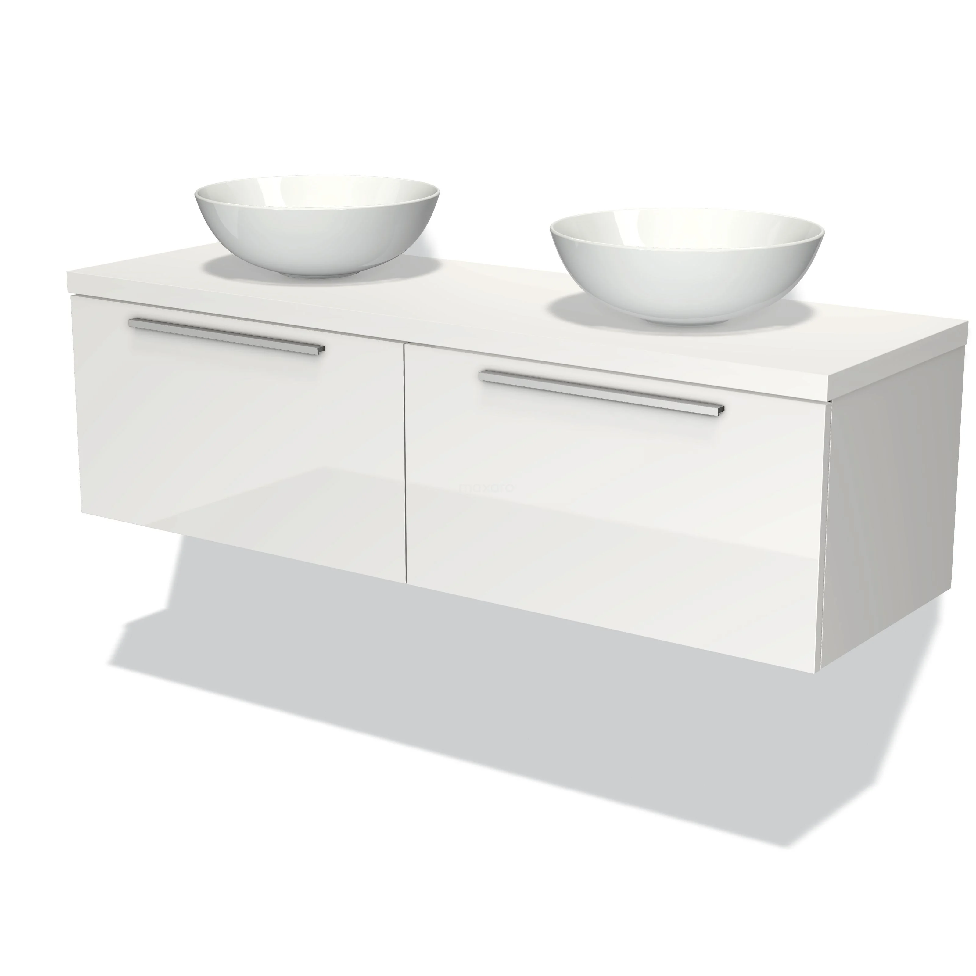 Modulo Plato Badmöbel mit Aufsatzwaschbecken | 140 cm Hochglanz Weiß Flach front Matt Weiß blatt 2 nebeneinanderliegende Schubladen