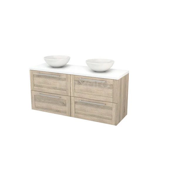 Modulo+ Plato Badmöbel mit Aufsatzwaschbecken | 140 cm Hochglanz Weiß Rahmen front Hochglanz Weiß blatt 4 Schubladen