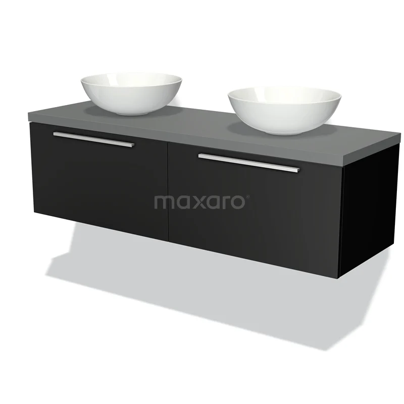 Modulo Plato Badmöbel mit Aufsatzwaschbecken | 140 cm Matt Schwarz Flach front Mittelgrau blatt 2 nebeneinanderliegende Schubladen