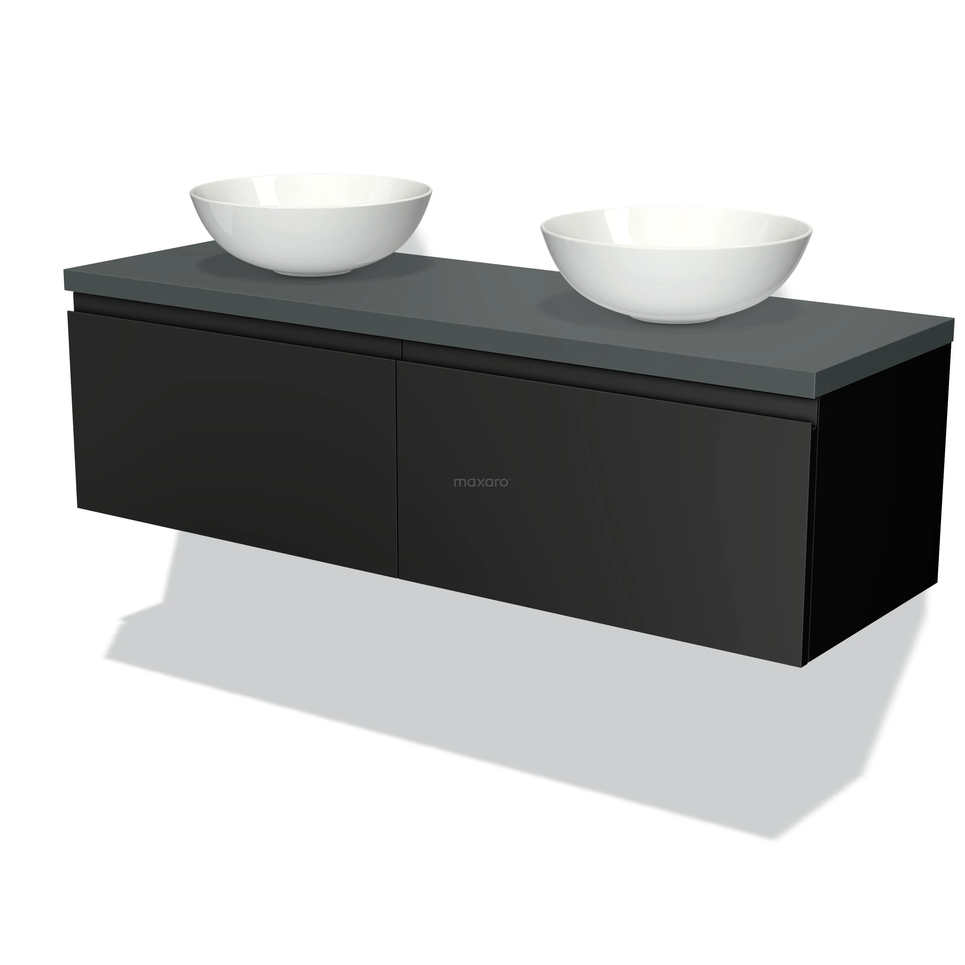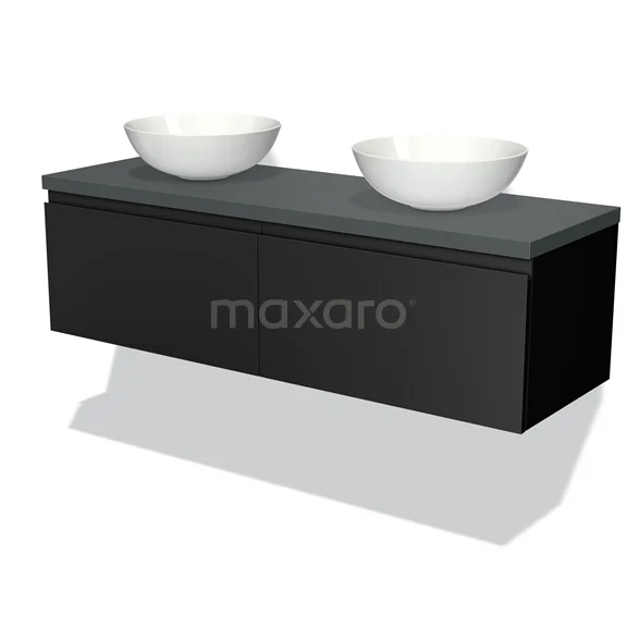 Modulo Plato Badmöbel mit Aufsatzwaschbecken | 140 cm Matt Schwarz Grifflos front Dunkelgrau blatt 2 nebeneinanderliegende Schubladen