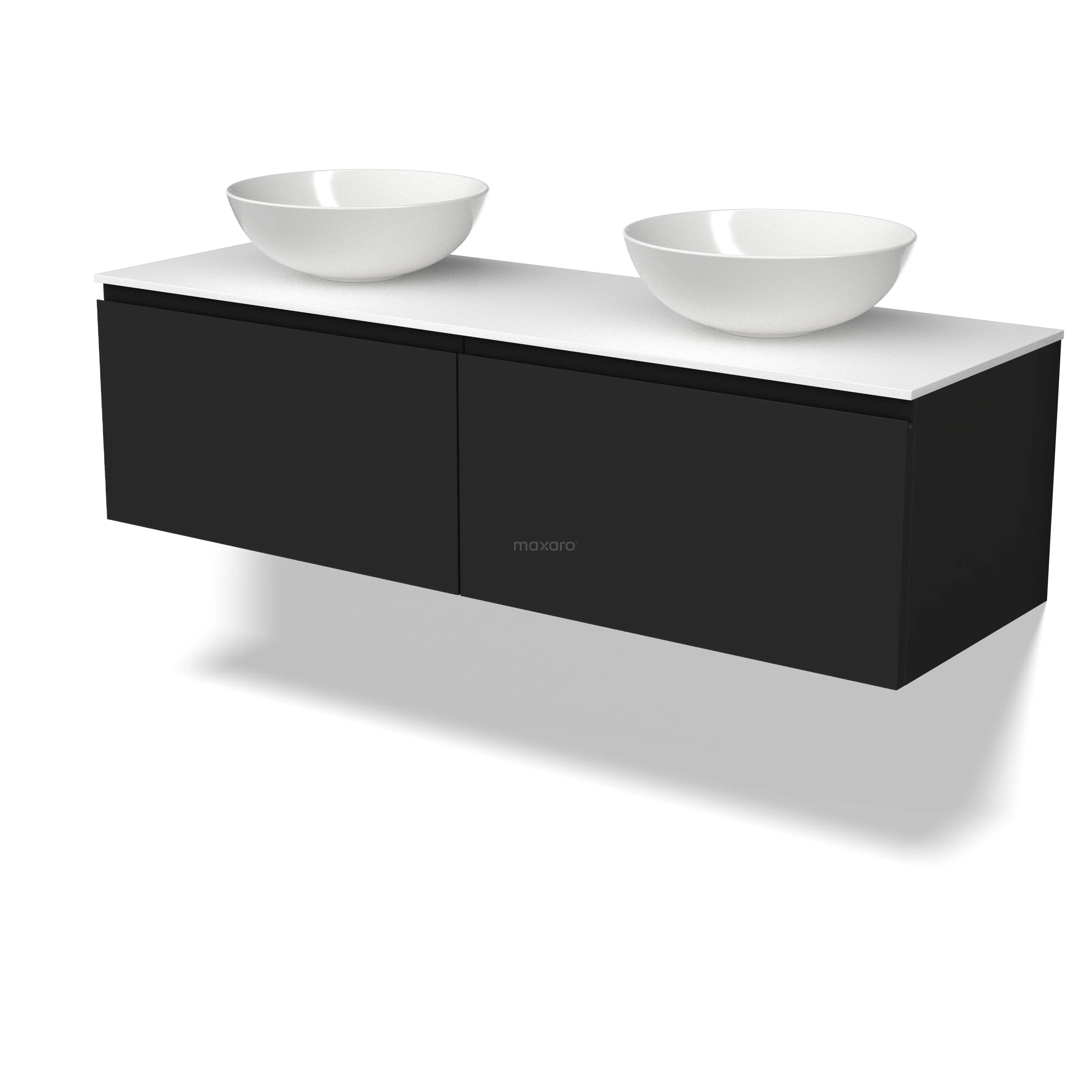Modulo Plato Badmöbel mit Aufsatzwaschbecken | 140 cm Matt Schwarz Grifflos front Solid Surface blatt 2 nebeneinanderliegende Schubladen