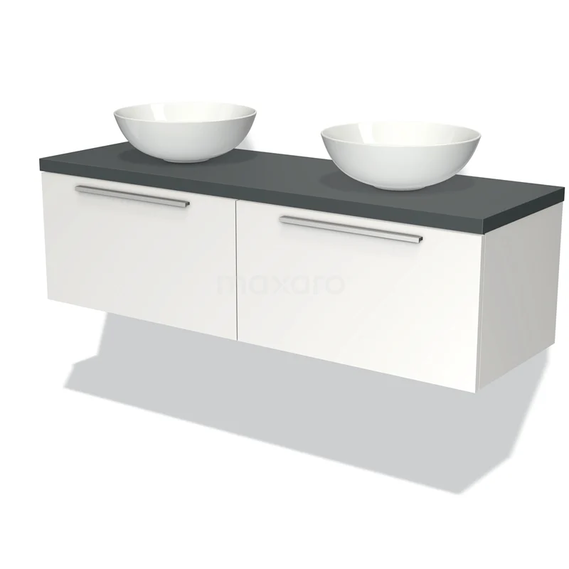 Modulo Plato Badmöbel mit Aufsatzwaschbecken | 140 cm Matt Weiß Flach front Dunkelgrau blatt 2 nebeneinanderliegende Schubladen