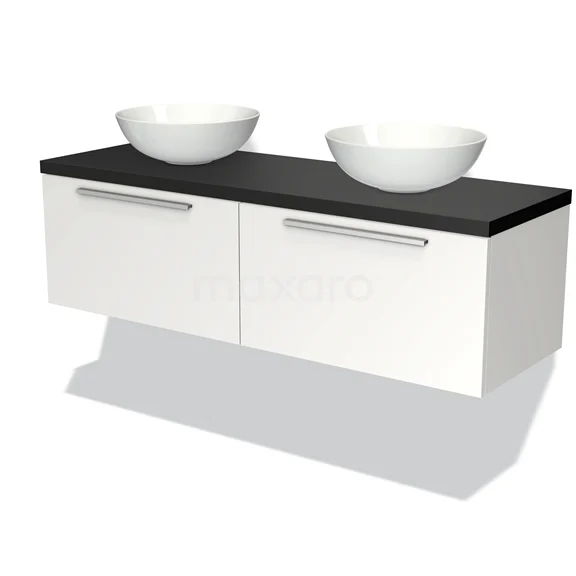 Modulo Plato Badmöbel mit Aufsatzwaschbecken | 140 cm Matt Weiß Flach front Matt Schwarz blatt 2 nebeneinanderliegende Schubladen