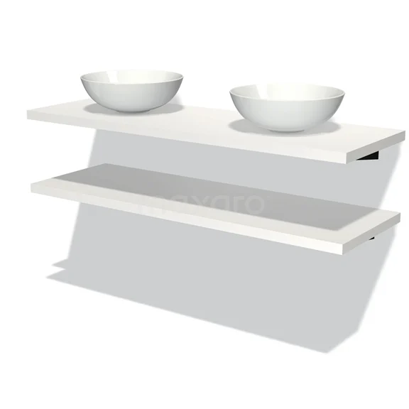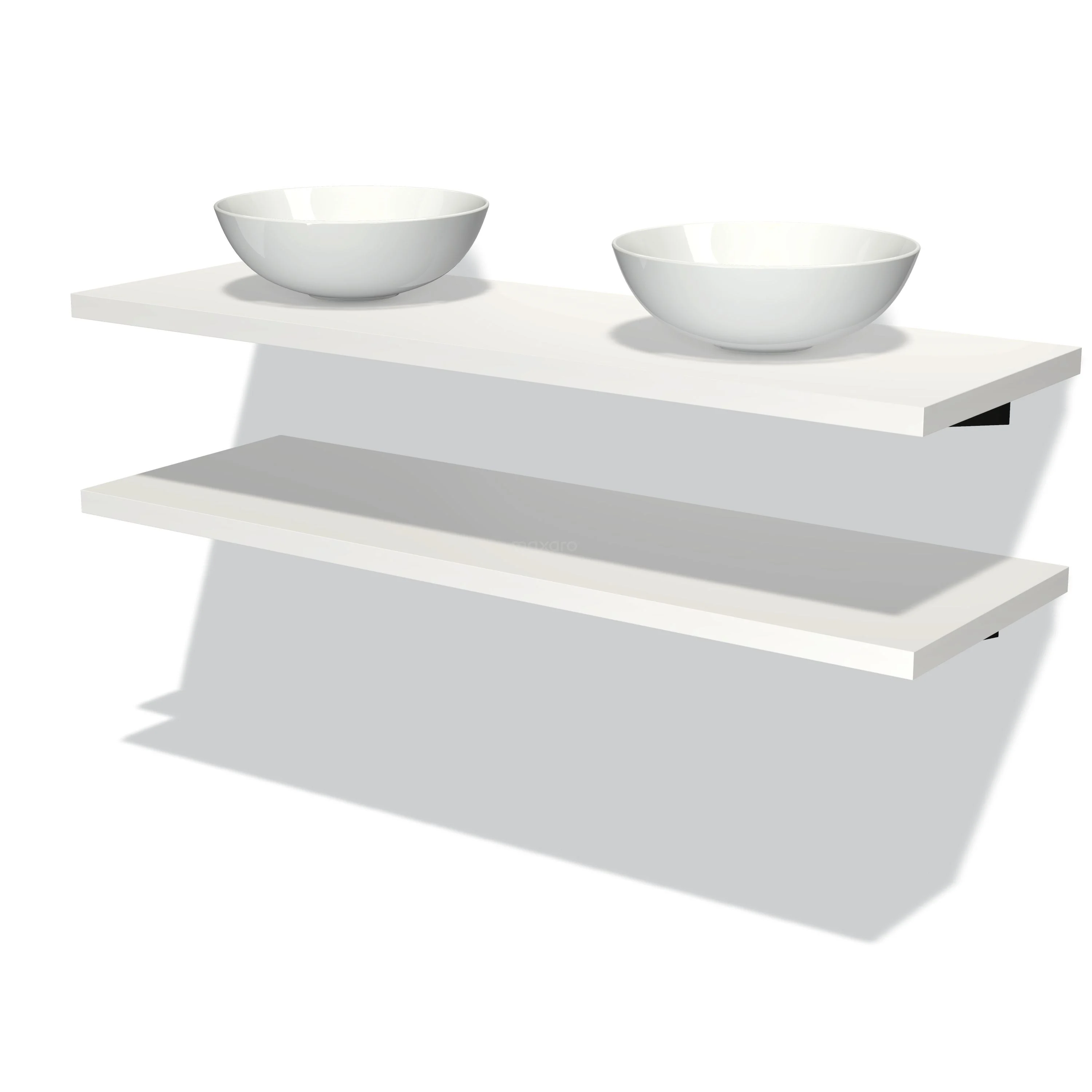 Modulo Plato Badmöbel mit Aufsatzwaschbecken | 140 cm Matt Weiß front Matt Weiß blatt 2 Waschtischplatten