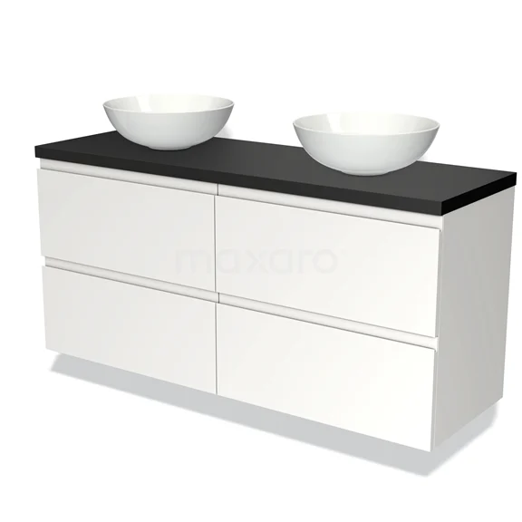 Modulo Plato Badmöbel mit Aufsatzwaschbecken | 140 cm Matt Weiß Grifflos front Matt Schwarz blatt 4 Schubladen