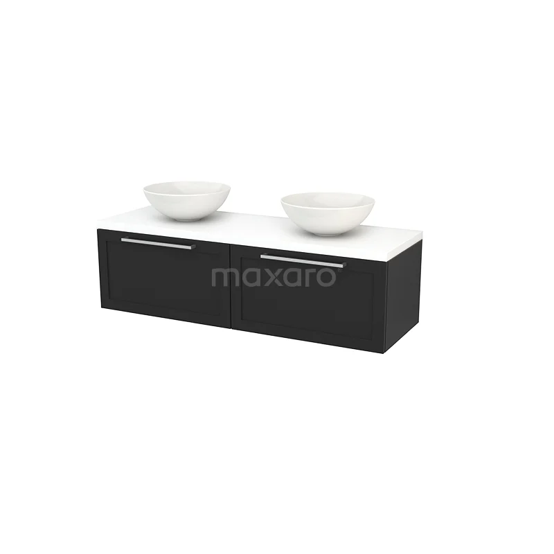 Modulo+ Plato Badmöbel mit Aufsatzwaschbecken | 140 cm Matt Weiß Rahmen front Matt Weiß blatt 2 nebeneinanderliegende Schubladen