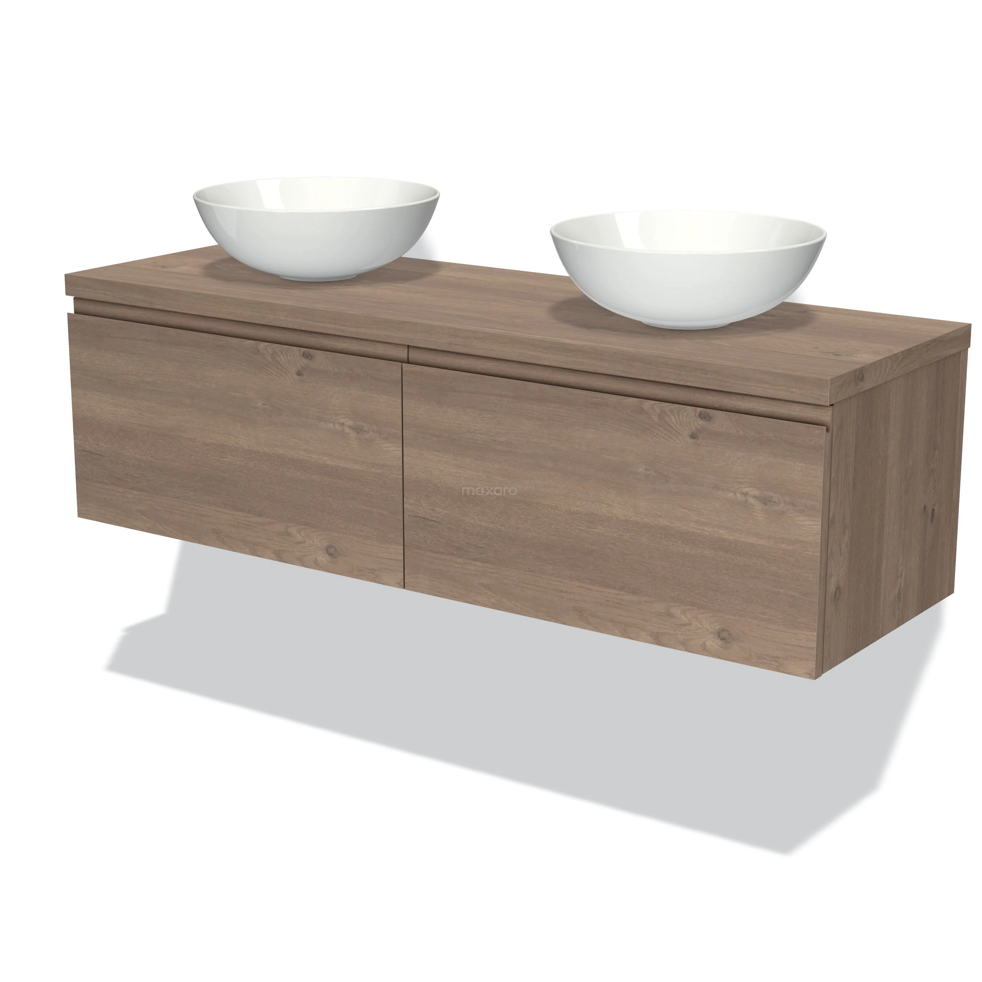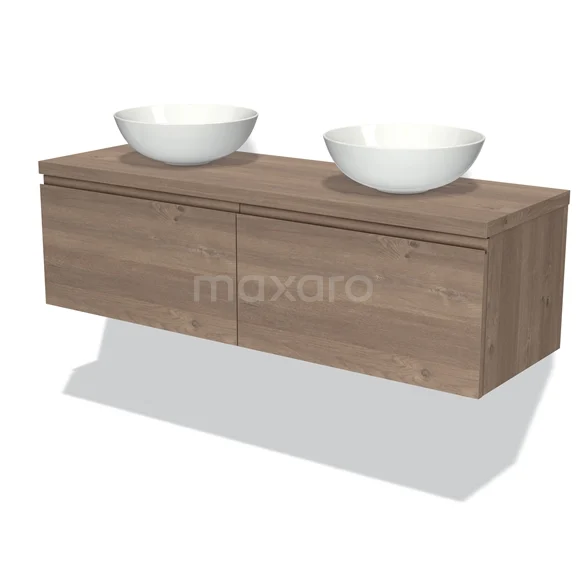 Modulo Plato Badmöbel mit Aufsatzwaschbecken | 140 cm Mittelbraune Eiche Grifflos front Mittelbraune Eiche blatt 2 nebeneinanderliegende Schubladen