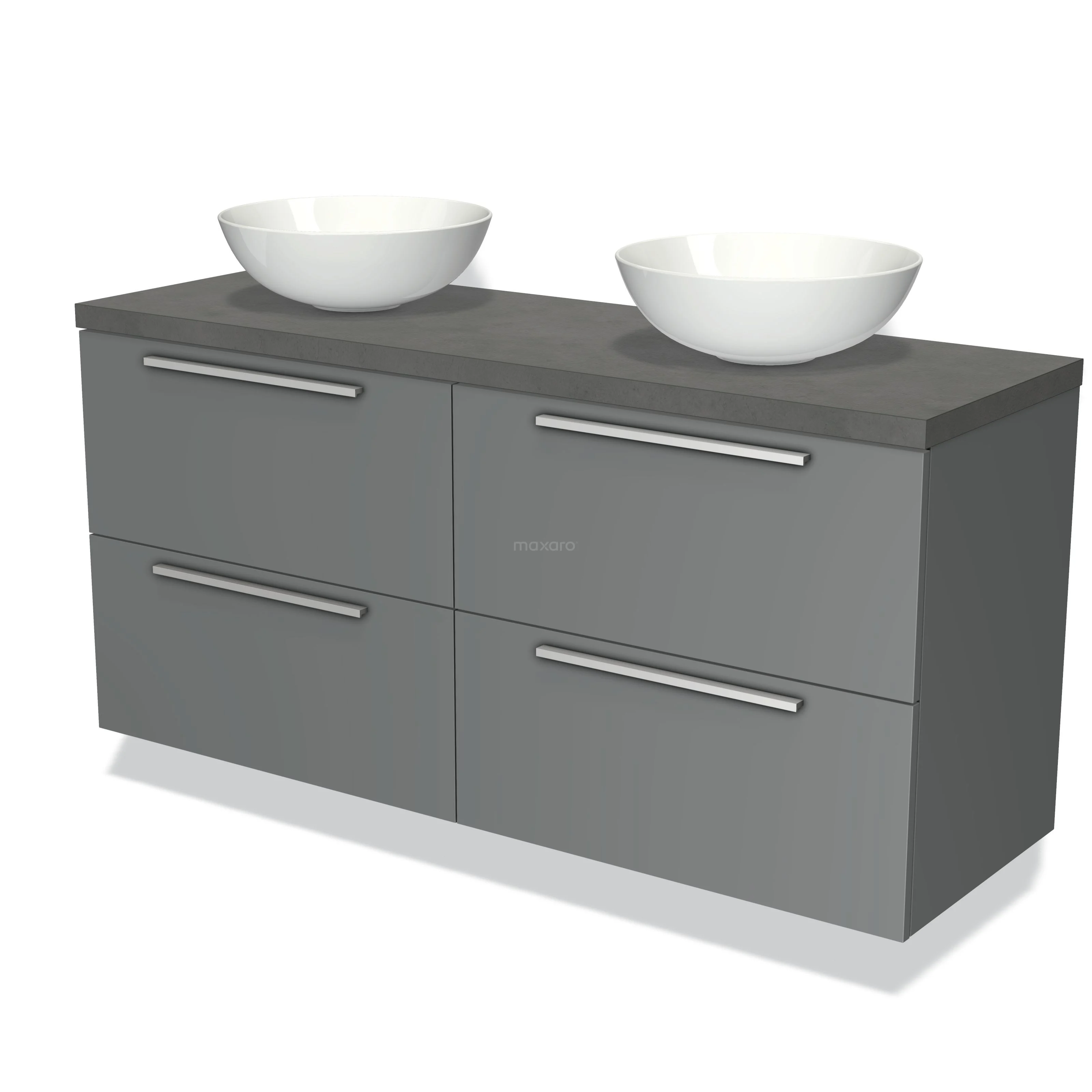 Modulo Plato Badmöbel mit Aufsatzwaschbecken | 140 cm Mittelgrau Flach front Dunkelgrauer Beton blatt 4 Schubladen