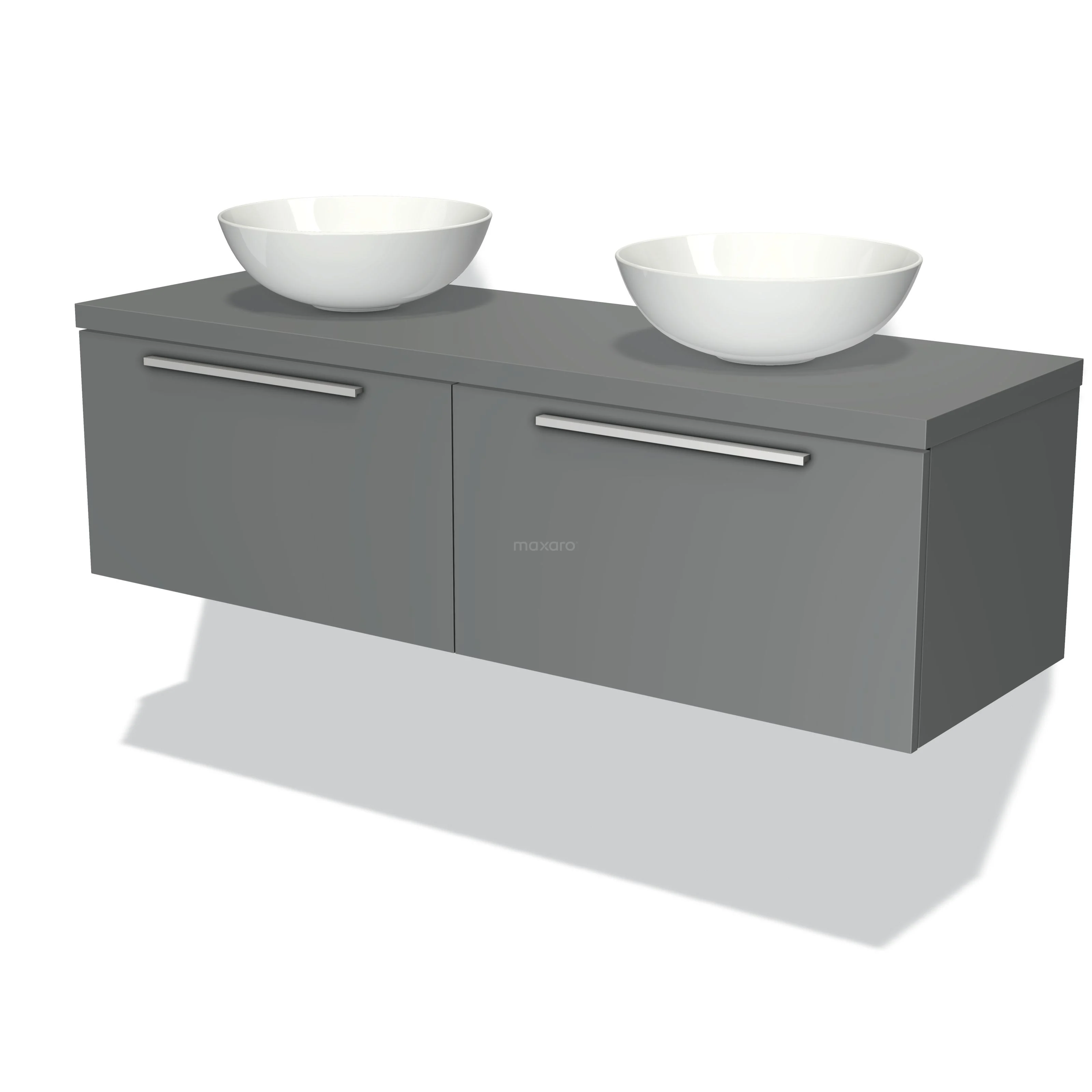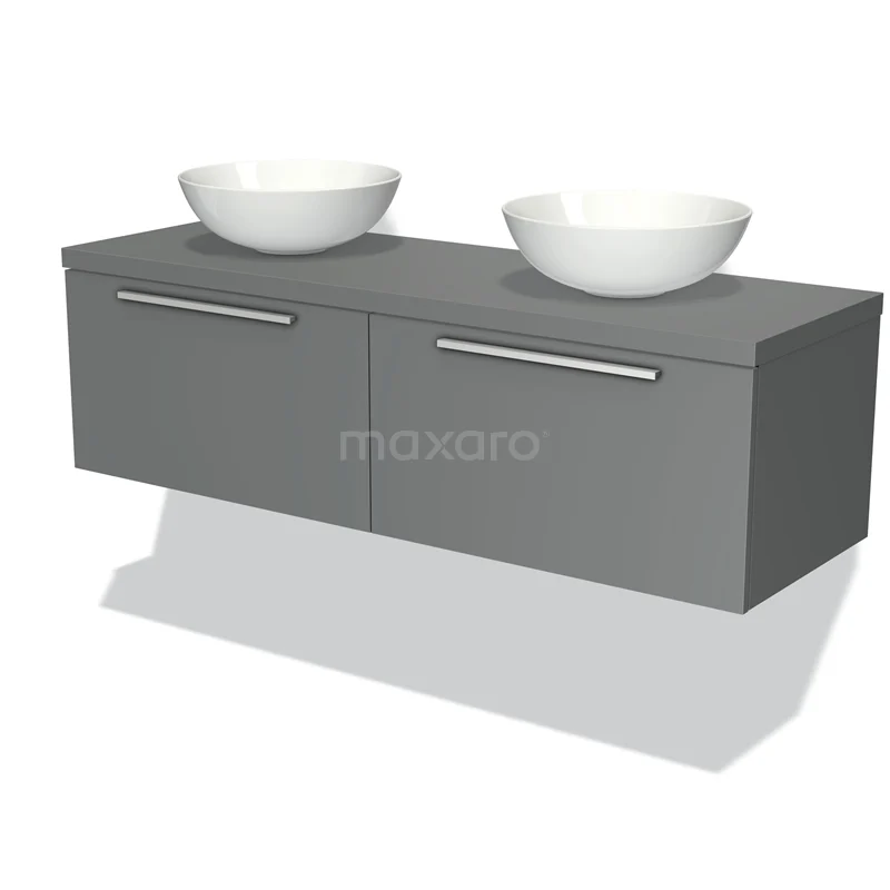 Modulo Plato Badmöbel mit Aufsatzwaschbecken | 140 cm Mittelgrau Flach front Mittelgrau blatt 2 nebeneinanderliegende Schubladen
