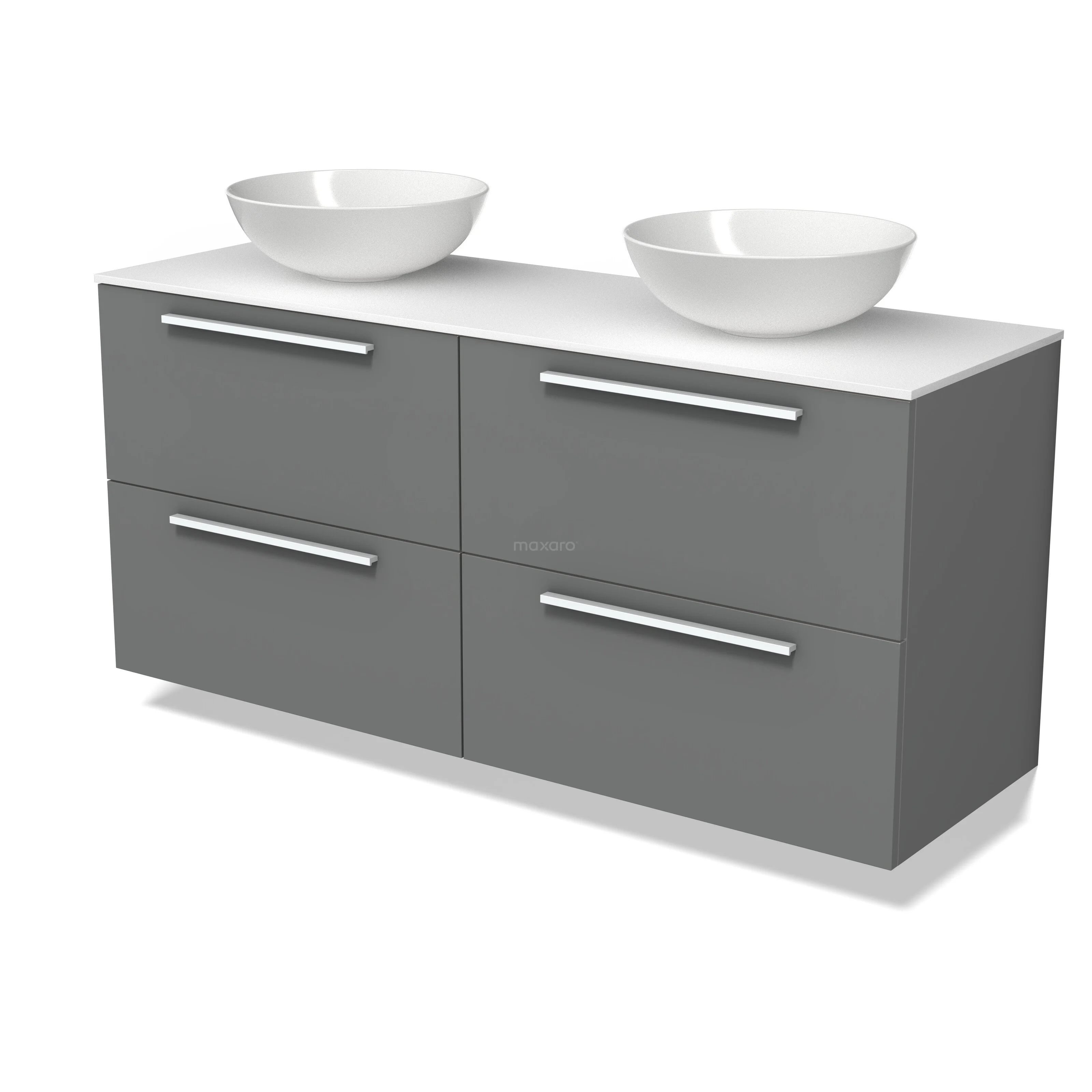 Modulo Plato Badmöbel mit Aufsatzwaschbecken | 140 cm Mittelgrau Flach front Solid Surface blatt 4 Schubladen