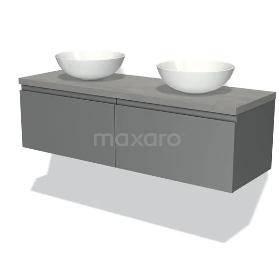 Modulo Plato Badmöbel mit Aufsatzwaschbecken | 140 cm Mittelgrau Grifflos front Hellgrauer Beton blatt 2 nebeneinanderliegende Schubladen