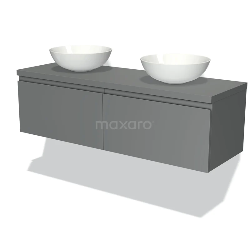 Modulo Plato Badmöbel mit Aufsatzwaschbecken | 140 cm Mittelgrau Grifflos front Mittelgrau blatt 2 nebeneinanderliegende Schubladen
