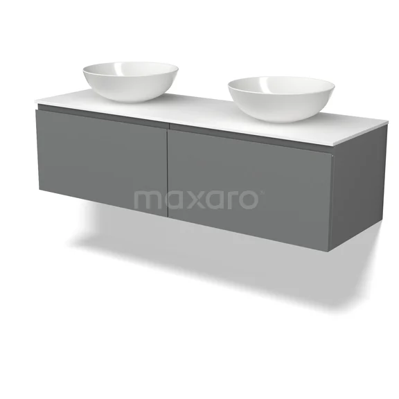Modulo Plato Badmöbel mit Aufsatzwaschbecken | 140 cm Mittelgrau Grifflos front Solid Surface blatt 2 nebeneinanderliegende Schubladen