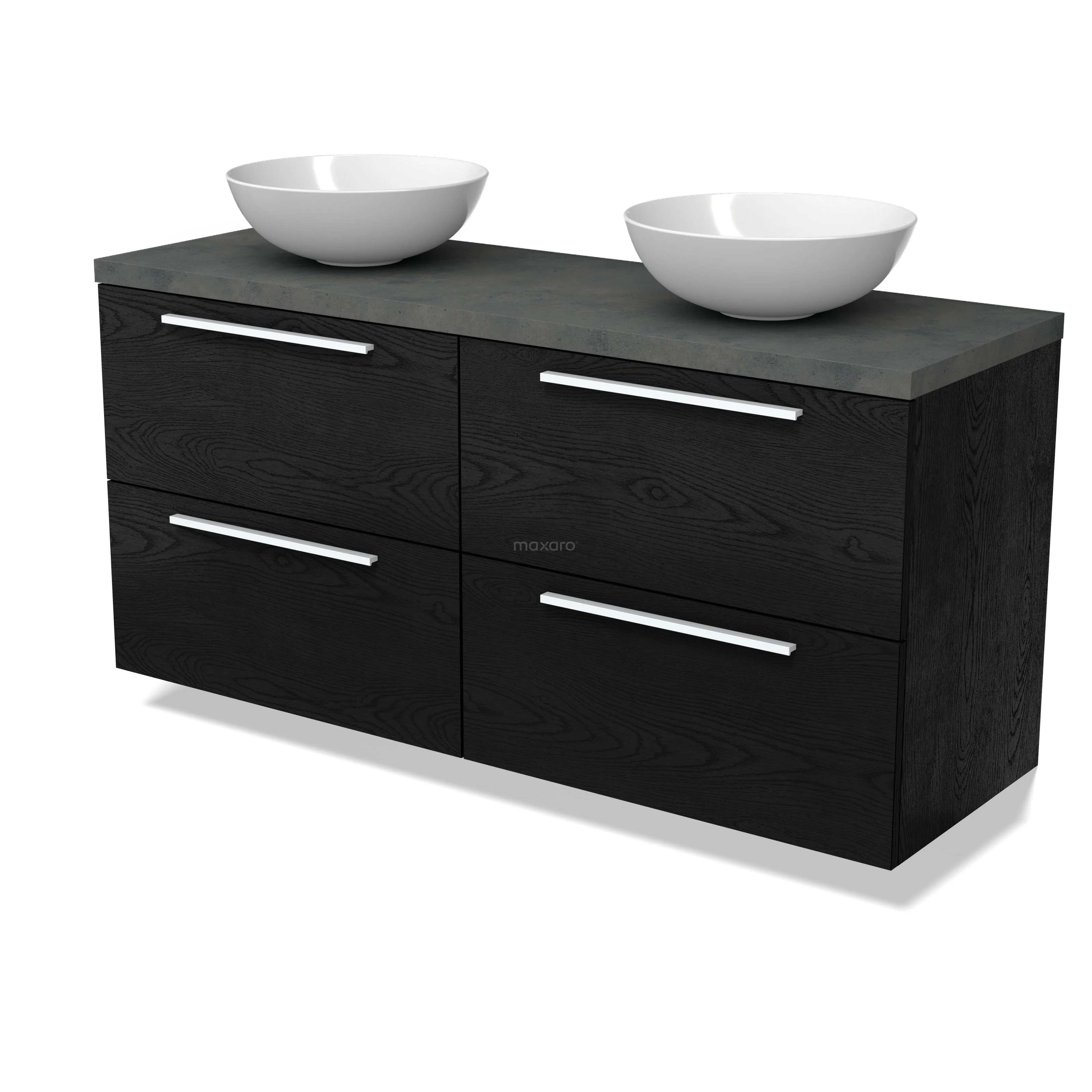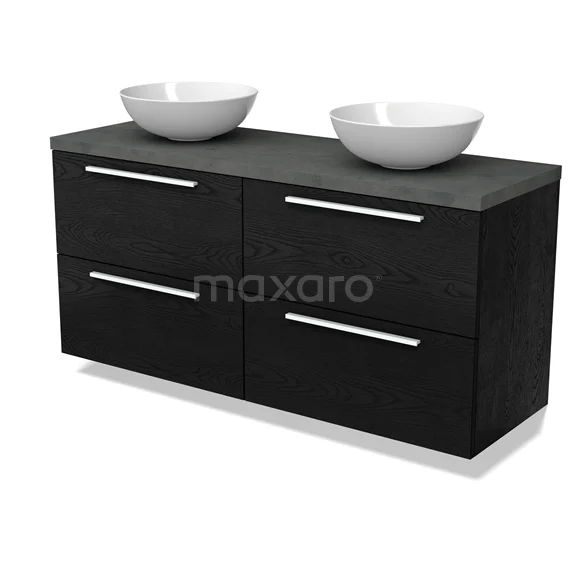 Modulo Plato Badmöbel mit Aufsatzwaschbecken | 140 cm Schwarze Eiche Flach front Dunkelgrauer Beton blatt 4 Schubladen