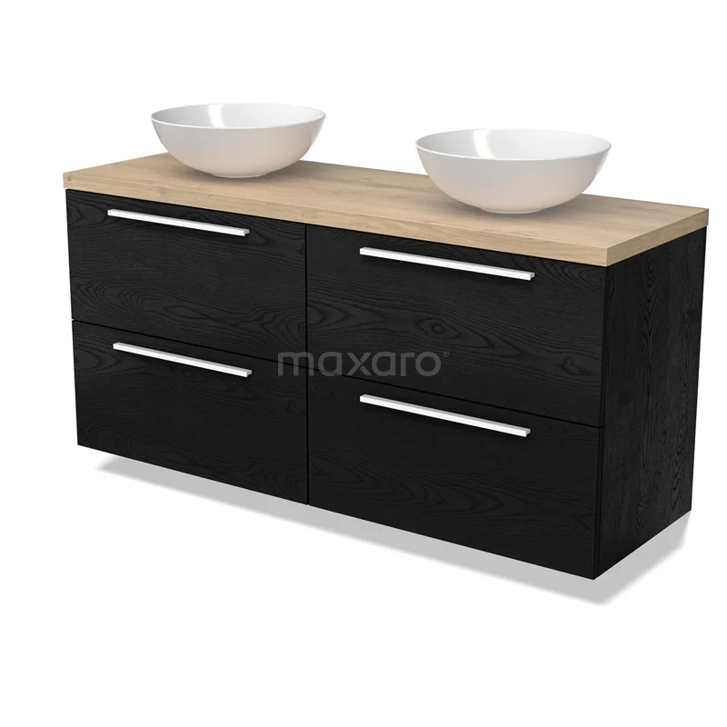 Modulo Plato Badmöbel mit Aufsatzwaschbecken | 140 cm Schwarze Eiche Flach front Hellbraune Eiche blatt 4 Schubladen