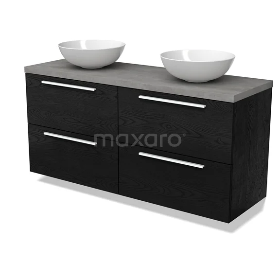 Modulo Plato Badmöbel mit Aufsatzwaschbecken | 140 cm Schwarze Eiche Flach front Hellgrauer Beton blatt 4 Schubladen