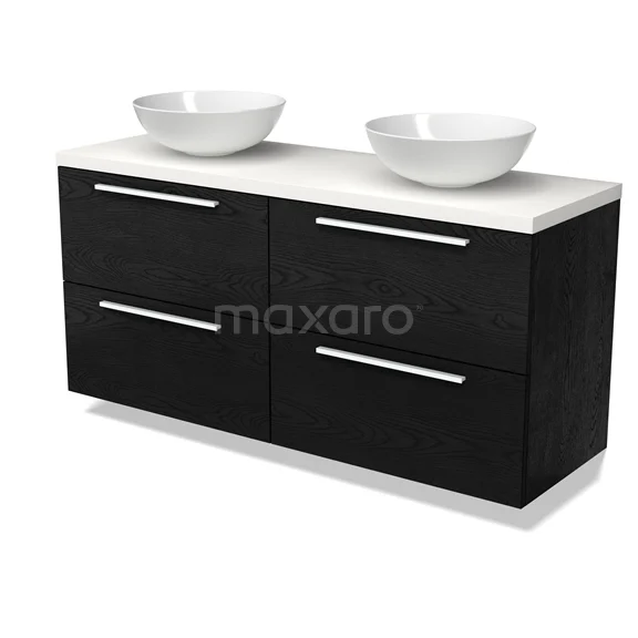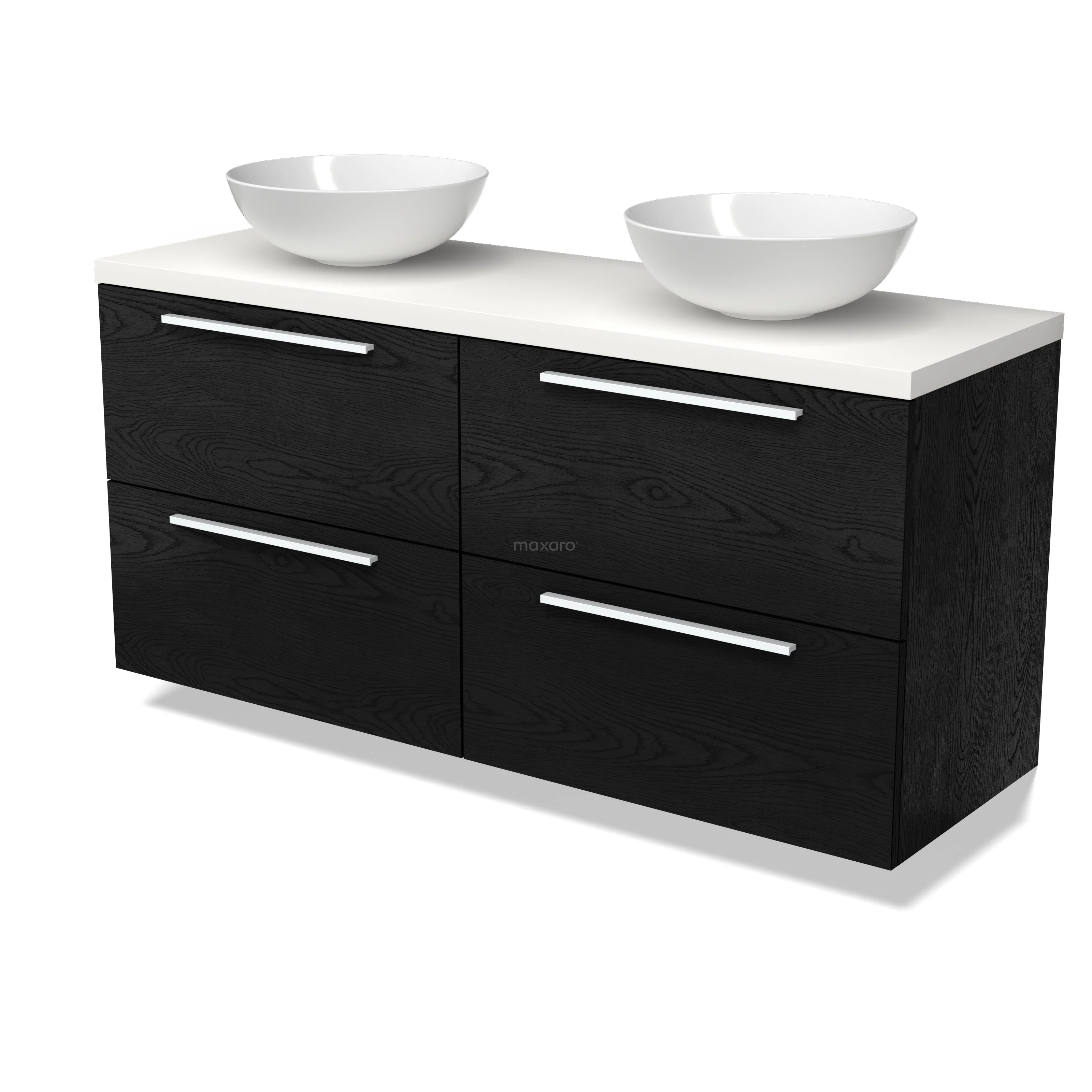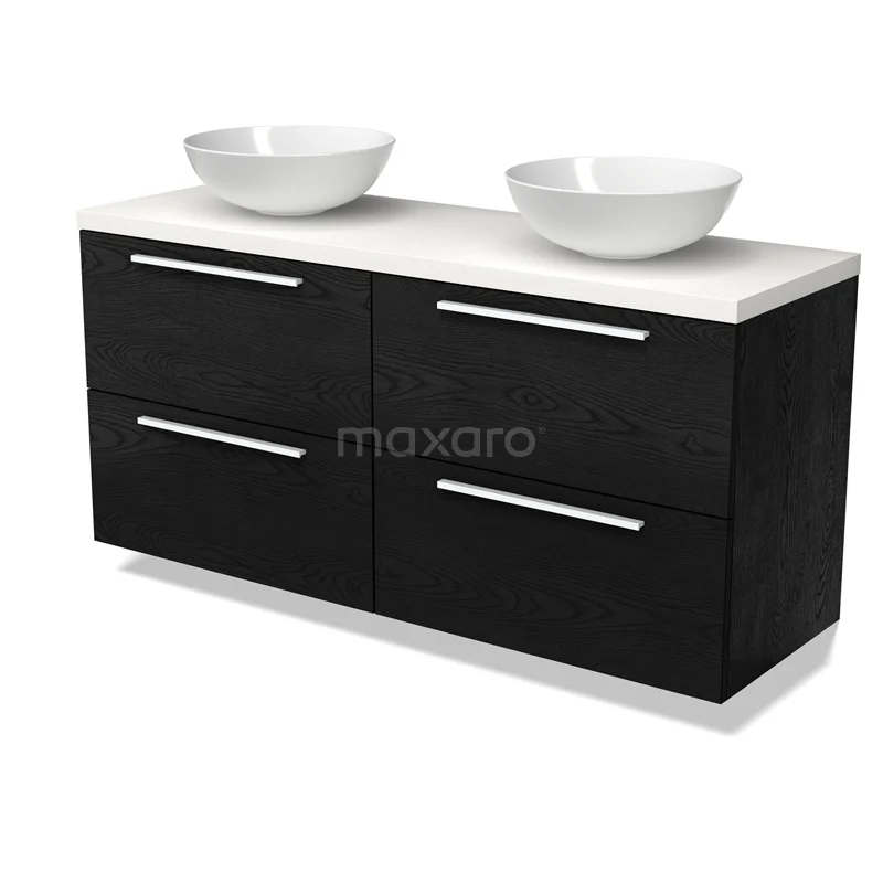 Modulo Plato Badmöbel mit Aufsatzwaschbecken | 140 cm Schwarze Eiche Flach front Matt Weiß blatt 4 Schubladen