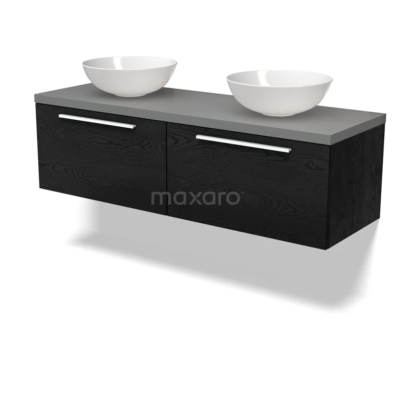 Modulo Plato Badmöbel mit Aufsatzwaschbecken | 140 cm Schwarze Eiche Flach front Mittelgrau blatt 2 nebeneinanderliegende Schubladen