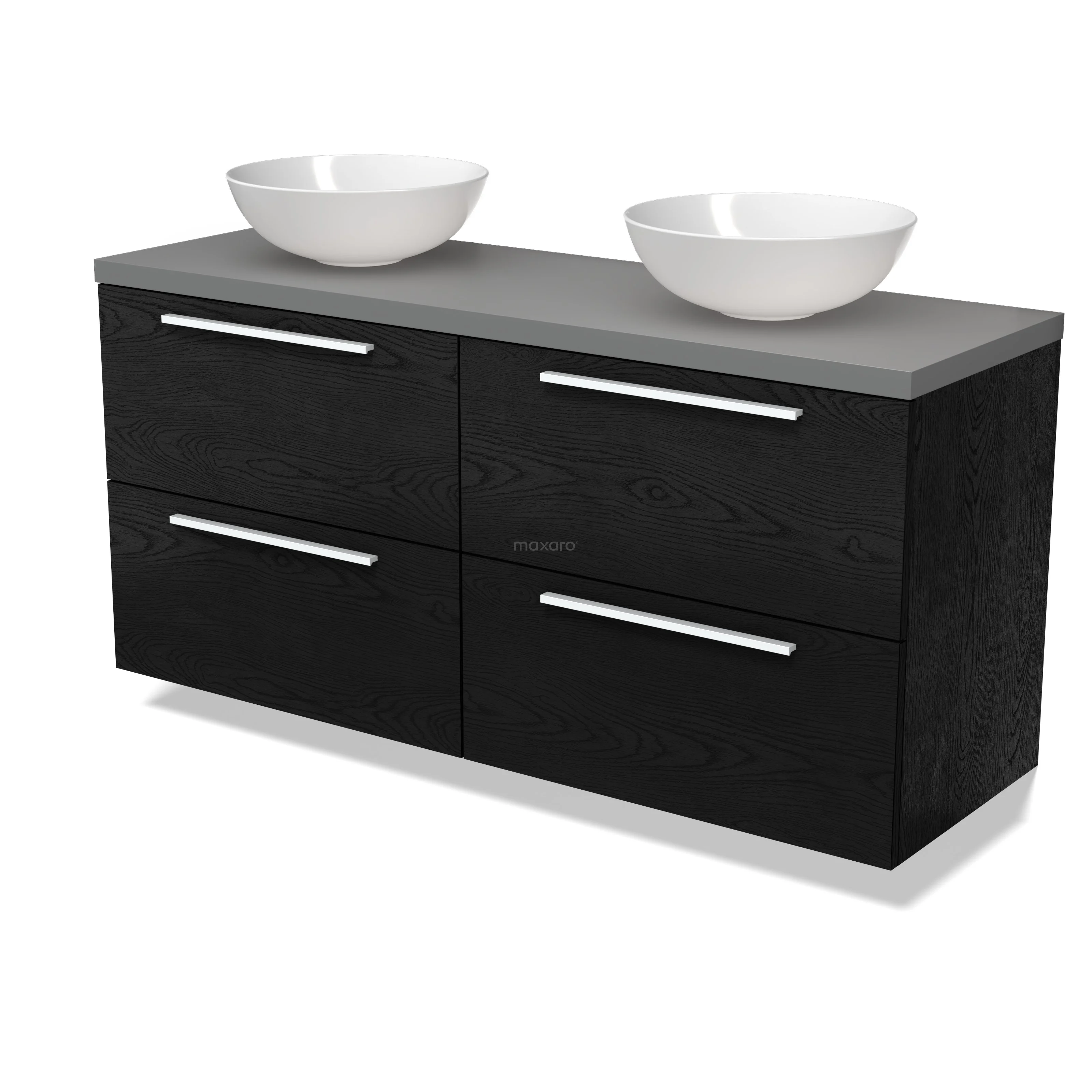 Modulo Plato Badmöbel mit Aufsatzwaschbecken | 140 cm Schwarze Eiche Flach front Mittelgrau blatt 4 Schubladen