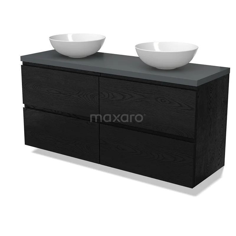 Modulo Plato Badmöbel mit Aufsatzwaschbecken | 140 cm Schwarze Eiche Grifflos front Dunkelgrau blatt 4 Schubladen