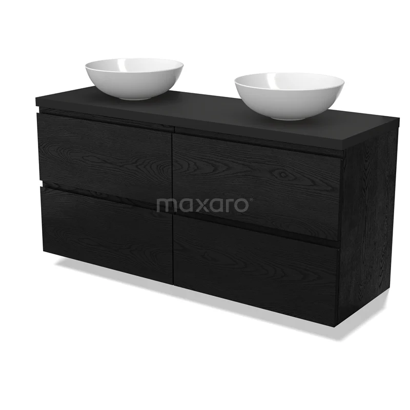 Modulo Plato Badmöbel mit Aufsatzwaschbecken | 140 cm Schwarze Eiche Grifflos front Matt Schwarz blatt 4 Schubladen