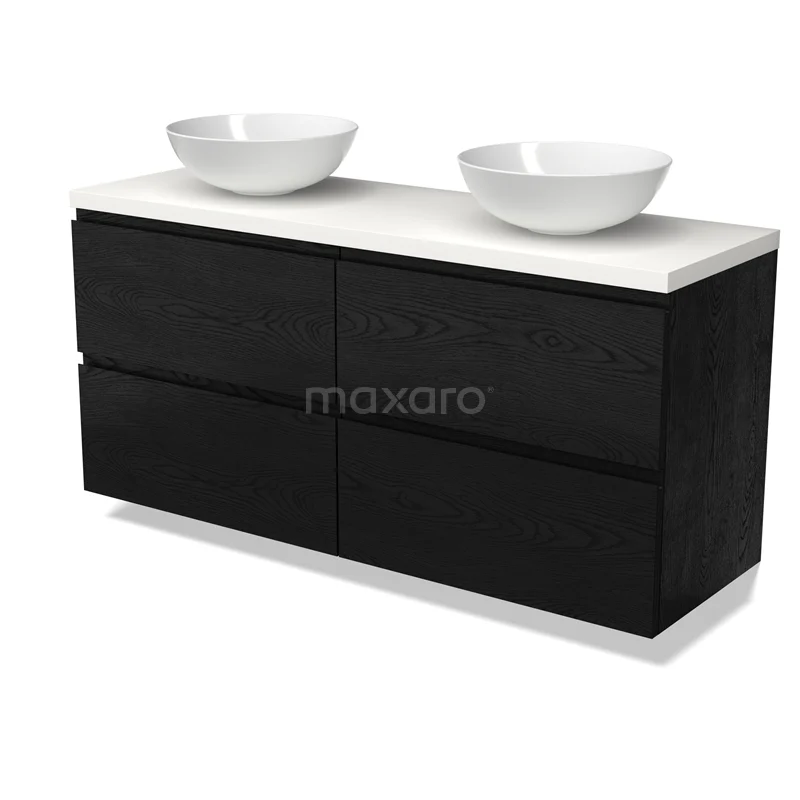 Modulo Plato Badmöbel mit Aufsatzwaschbecken | 140 cm Schwarze Eiche Grifflos front Matt Weiß blatt 4 Schubladen