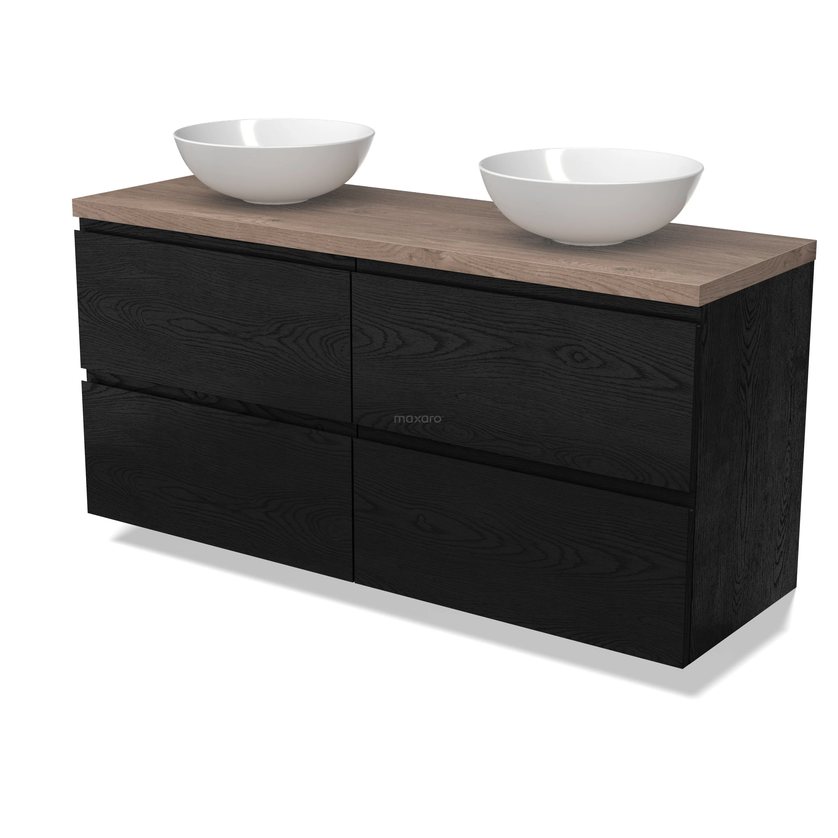 Modulo Plato Badmöbel mit Aufsatzwaschbecken | 140 cm Schwarze Eiche Grifflos front Mittelbraune Eiche blatt 4 Schubladen