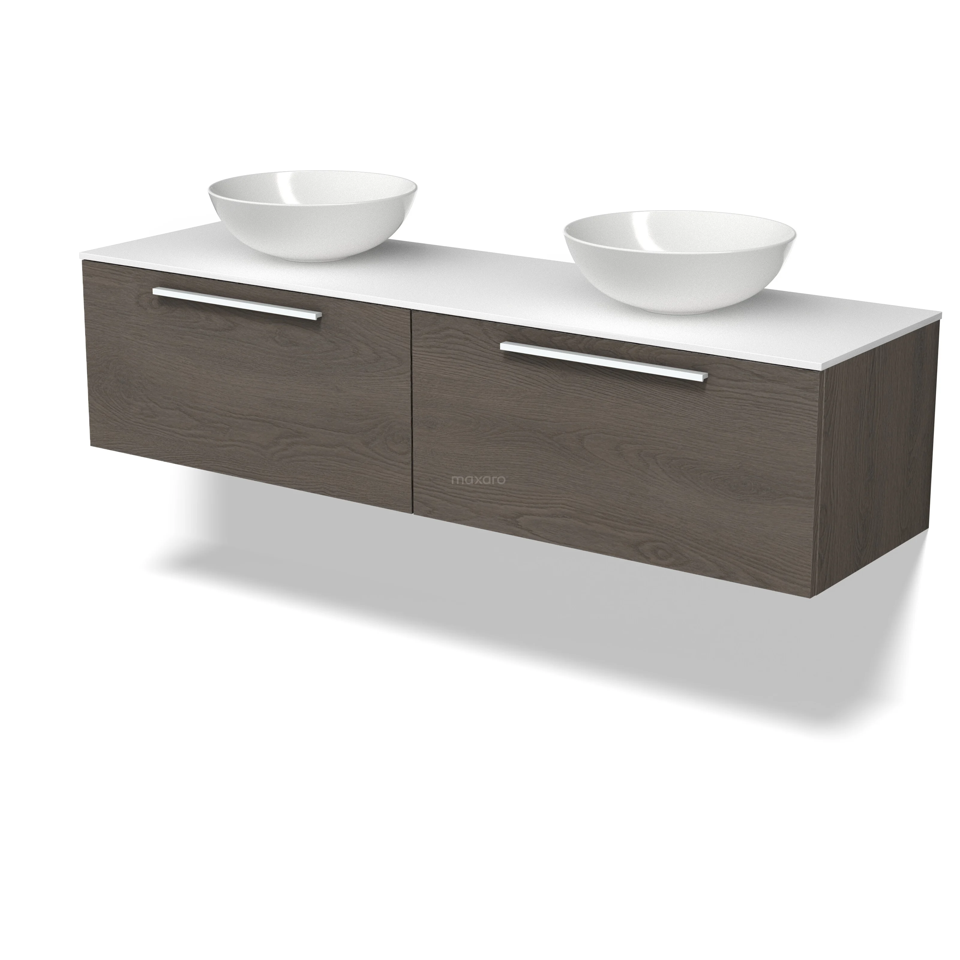 Modulo Plato Badmöbel mit Aufsatzwaschbecken | 160 cm Dunkelbraune Eiche Flach front Solid Surface blatt 2 nebeneinanderliegende Schubladen
