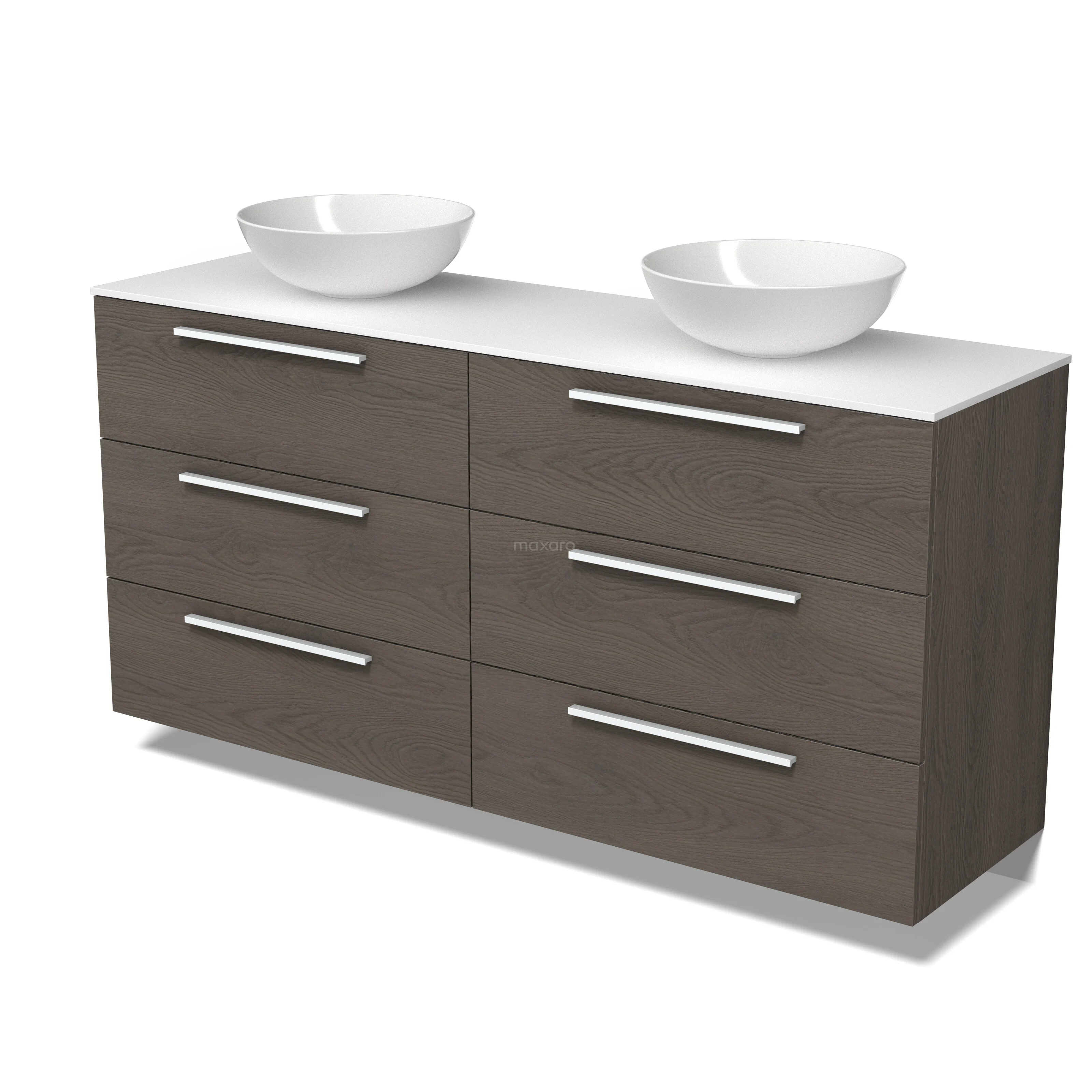 Modulo Plato Badmöbel mit Aufsatzwaschbecken | 160 cm Dunkelbraune Eiche Flach front Solid Surface blatt 6 Schubladen