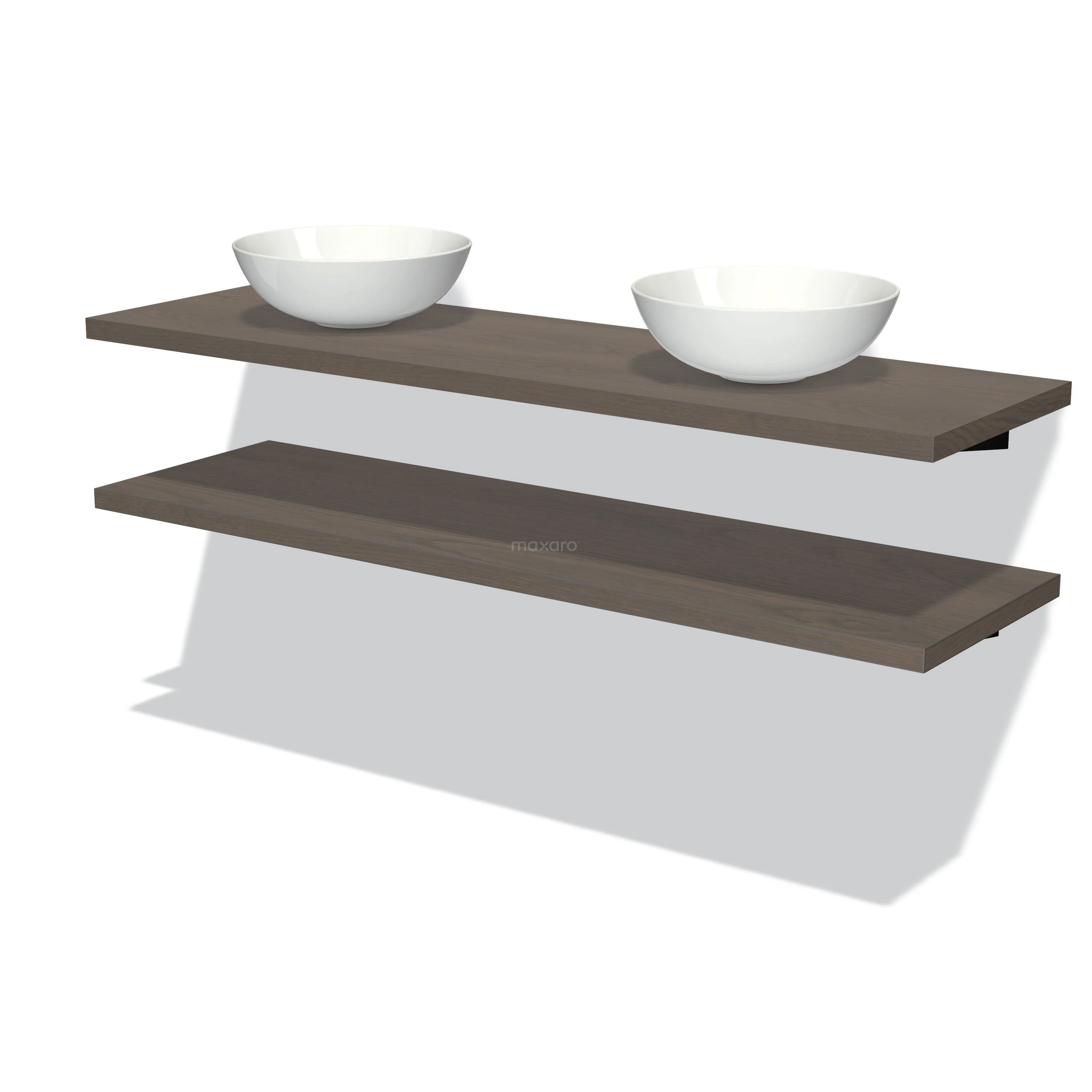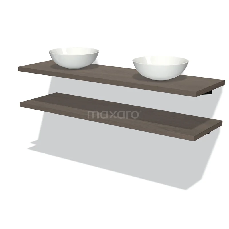 Modulo Plato Badmöbel mit Aufsatzwaschbecken | 160 cm Dunkelbraune Eiche front Dunkelbraune Eiche blatt 2 Waschtischplatten