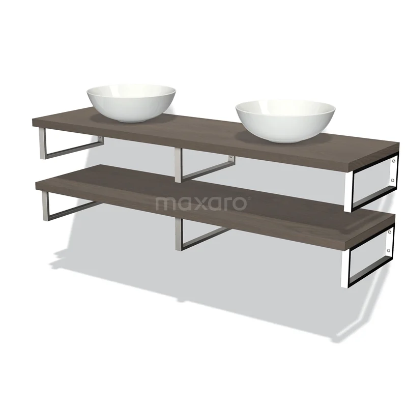 Modulo Plato Badmöbel mit Aufsatzwaschbecken | 160 cm Dunkelbraune Eiche front Dunkelbraune Eiche blatt 2 Waschtischplatten