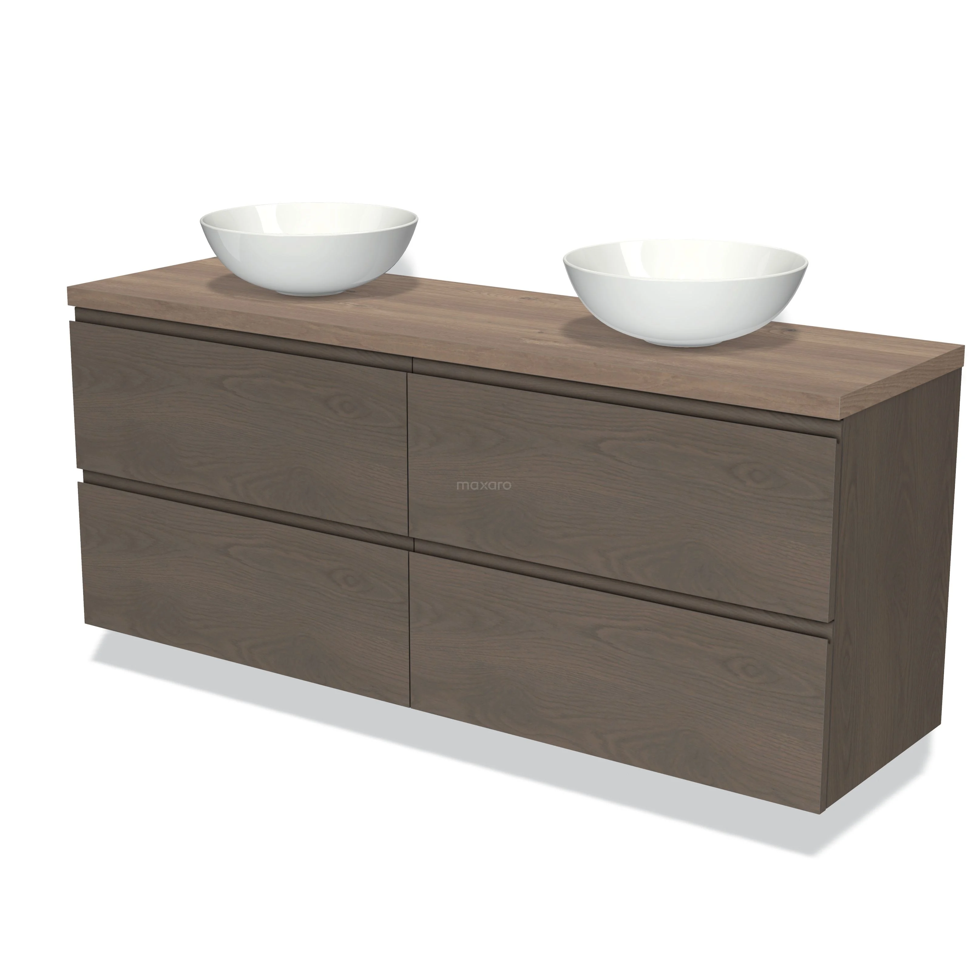 Modulo Plato Badmöbel mit Aufsatzwaschbecken | 160 cm Dunkelbraune Eiche Grifflos front Mittelbraune Eiche blatt 4 Schubladen