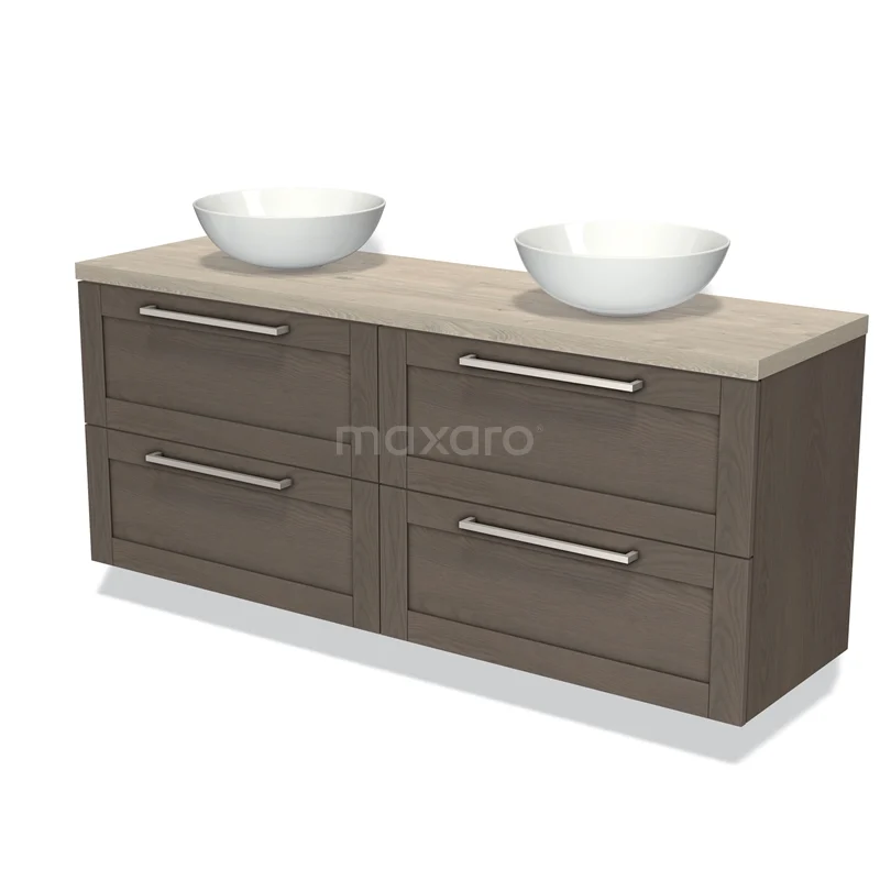 Modulo Plato Badmöbel mit Aufsatzwaschbecken | 160 cm Dunkelbraune Eiche Rahmen front Hellgraue Eiche blatt 4 Schubladen