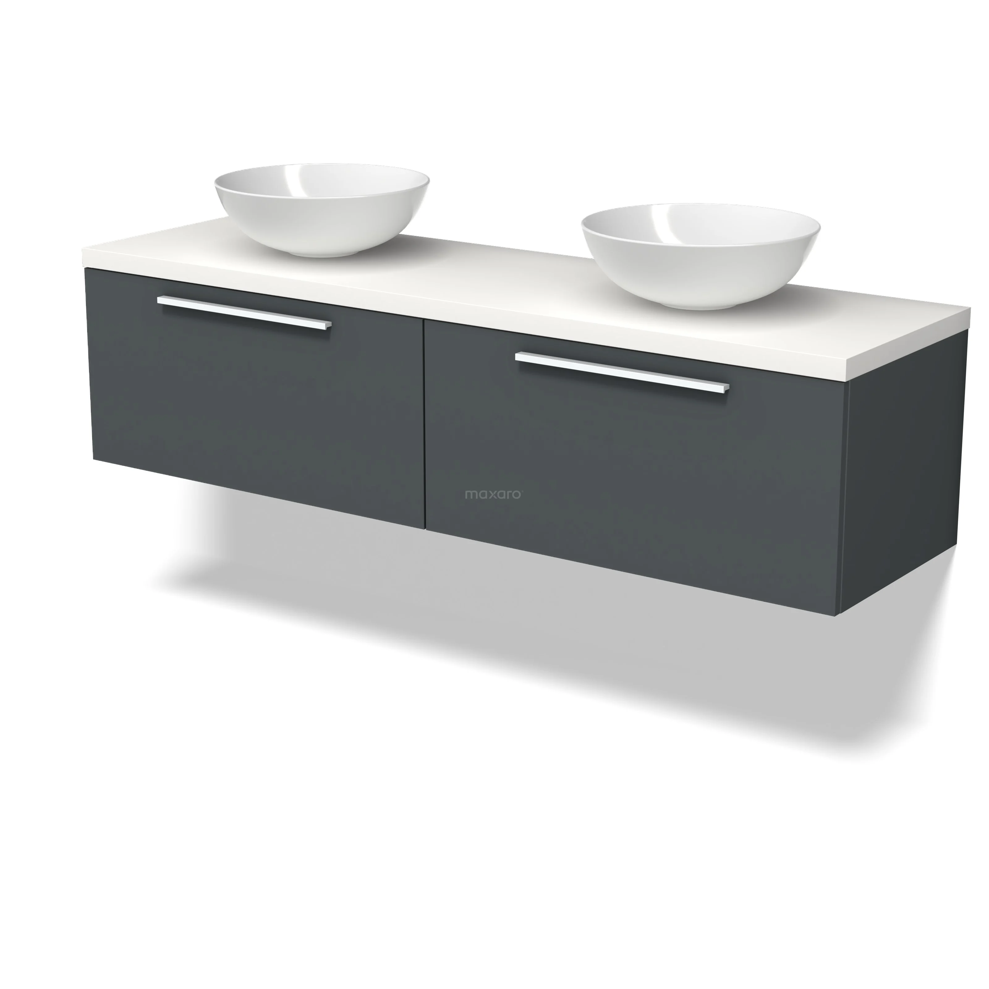 Modulo Plato Badmöbel mit Aufsatzwaschbecken | 160 cm Dunkelgrau Flach front Matt Weiß blatt 2 nebeneinanderliegende Schubladen